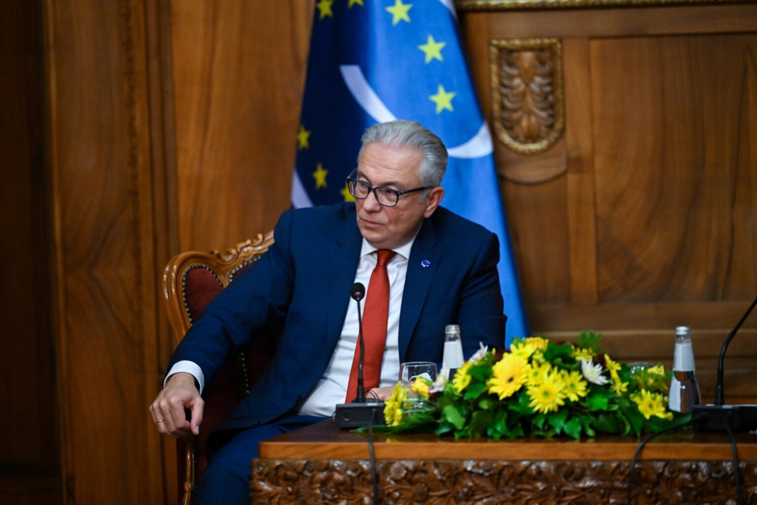 Осврнувајќи се на геополитичките случувања, Русопулос рече дека демократијата ја губи својата емоционална гравитација и порача дека мора да се анимира демократијата, а Советот на Европа дека останува местото за дијалог.