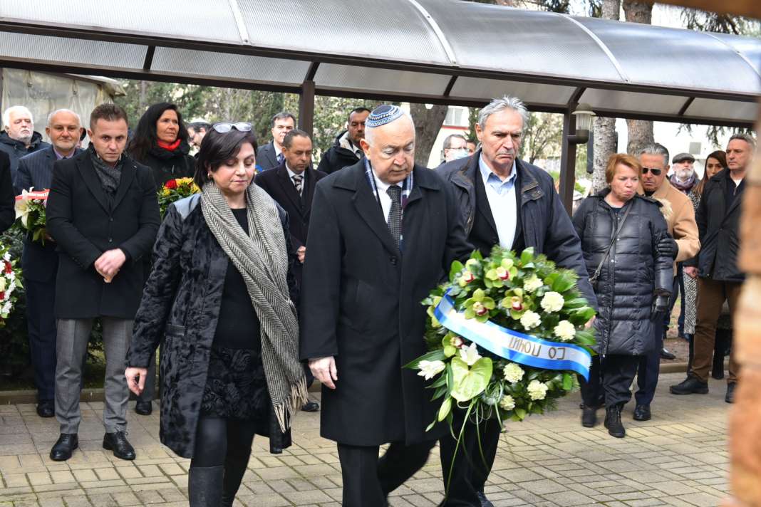 На комеморацијата синоќа се обрати и Ендру Бејкер, директор за меѓународни еврејски работи во Американскиот еврејски комитет и претседател на Меѓународниот советодавен совет на Фондот на холокаустот на Евреите од Македонија и директорот на Меморијалниот центар на холокаустот Горан Садикаријо, кој ја отвори изложбата „Живот“ посветена на преживеаните Евреи кои ја возобновиле заедницата и придонеле во градењето на повоената држава.