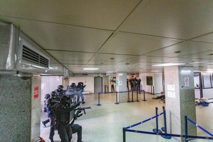 Диверзија со импровизирана експлозивна направа во ВИП-зоната и координиран терористички напад со заложничка криза во терминалната зграда, денеска беа дел од симулациската вежба „Сигурен хоризонт 2026 – двојна закана“, која беше реализирана на аеродромот „Свети Апостол Павле“ во Охрид. Вежбата ја организираше Секторот за полициски работи од општа надлежност при Бирото за јавна безбедност, во соработка со ТАВ Македонија.