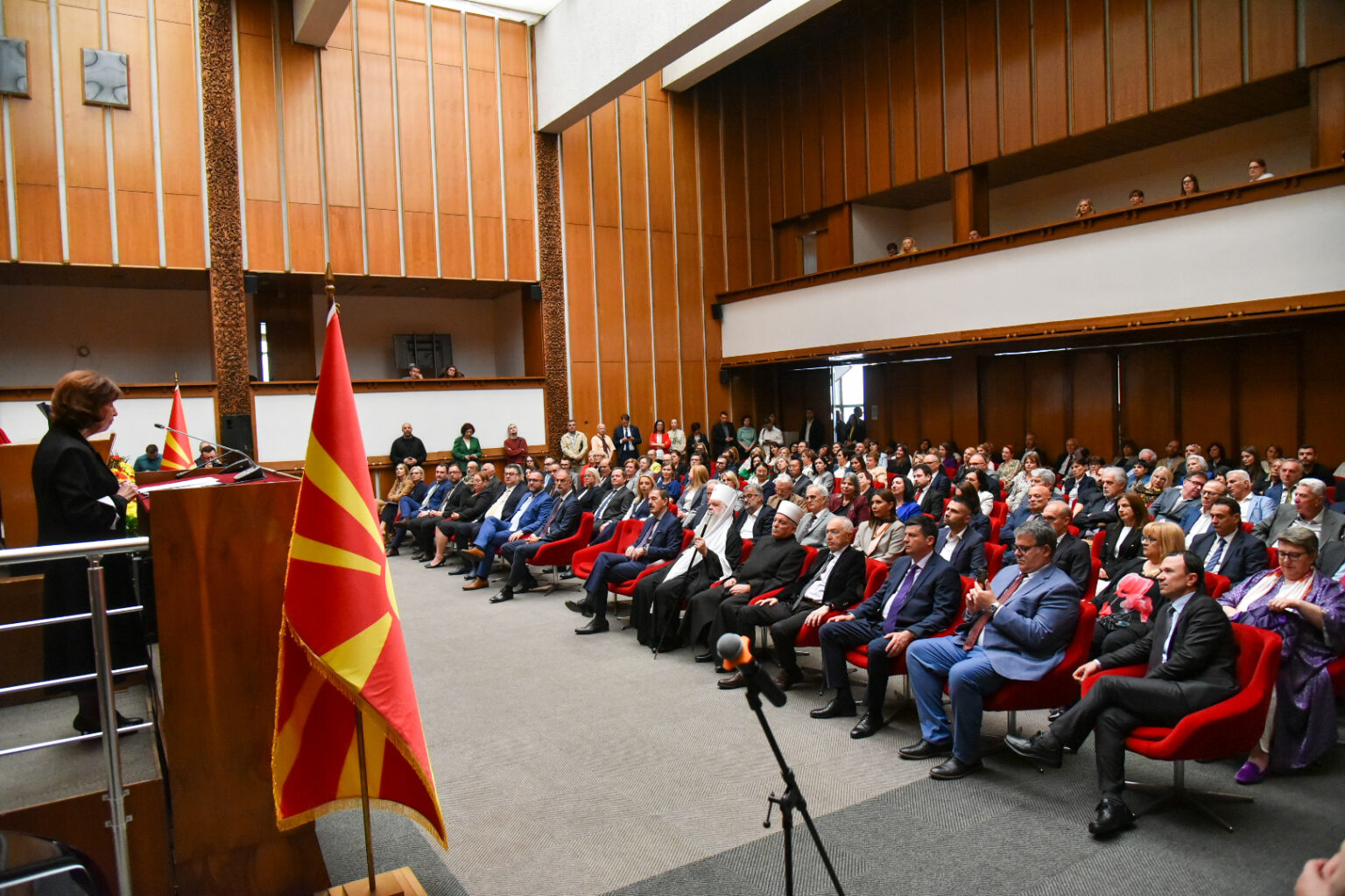 Поради масовното иселување на младите, во моментов македонскиот јазик има повеќе говорители во дијаспората, отколку во татковината. Јазикот мораме да го заштитиме со доследно почитување на уставната норма, но и во дигиталната ера за да биде достапен за дијаспората и за идните поколенија – напомена претседателката Гордана Силјановска Давкова.