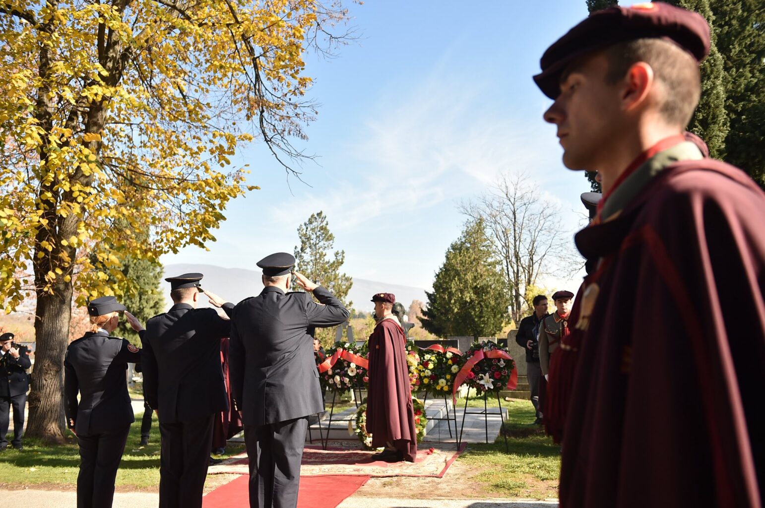 Цвеќе беше положено на Партизанските гробишта во Бутел и на Алејата на великаните на гробот на генерал Михајло Апостолски.