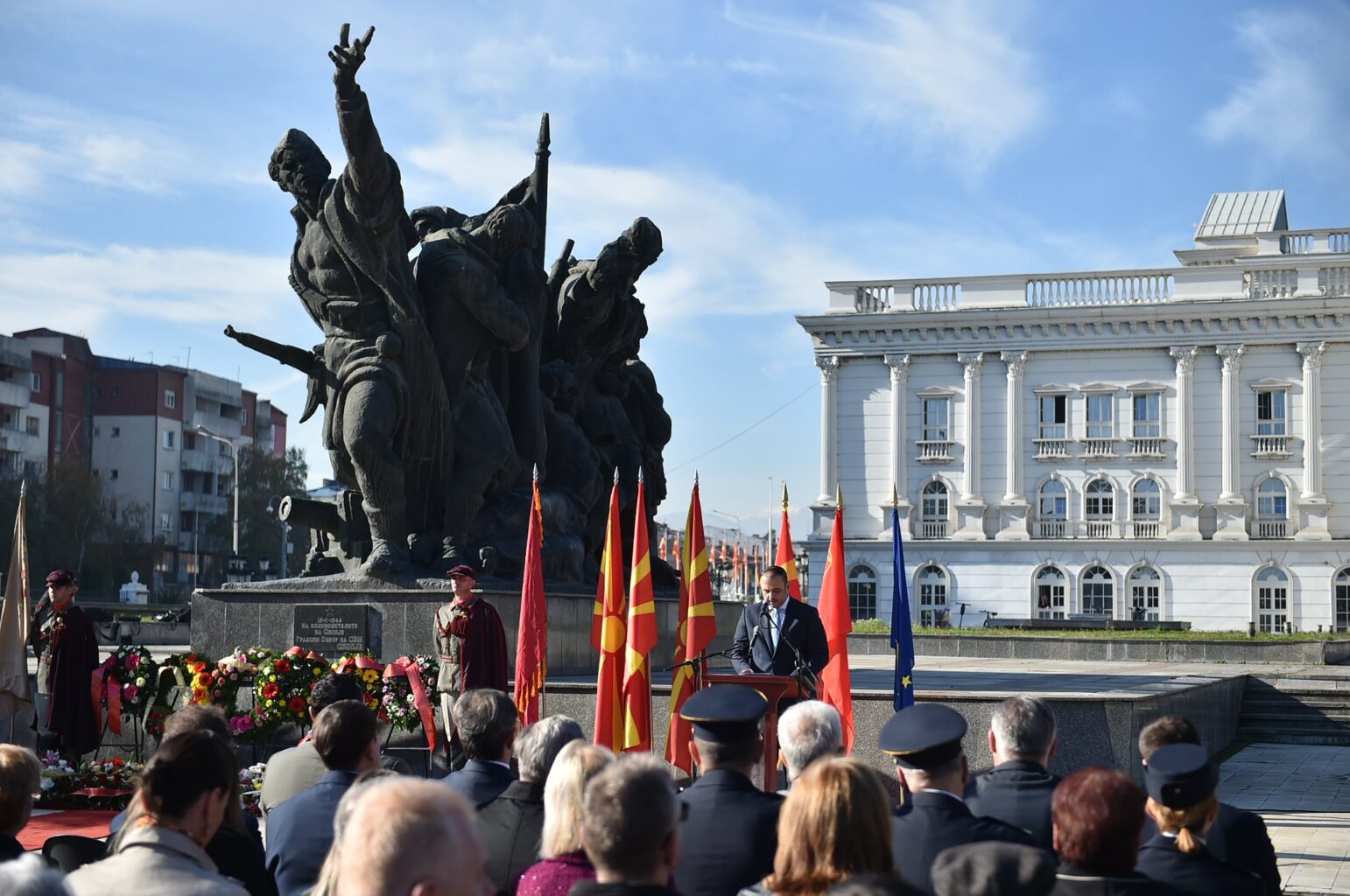 На чествувањето присуствуваа претставници од Сојузот на борци, од Градот Скопје предводена од градоначалникот Орце Ѓорѓиевски, претставници од Собранието и Владата на Република Северна Македонија, од кабинетот на претседателката, Армијата на Република Северна Македонија, како и од Црвениот крст.