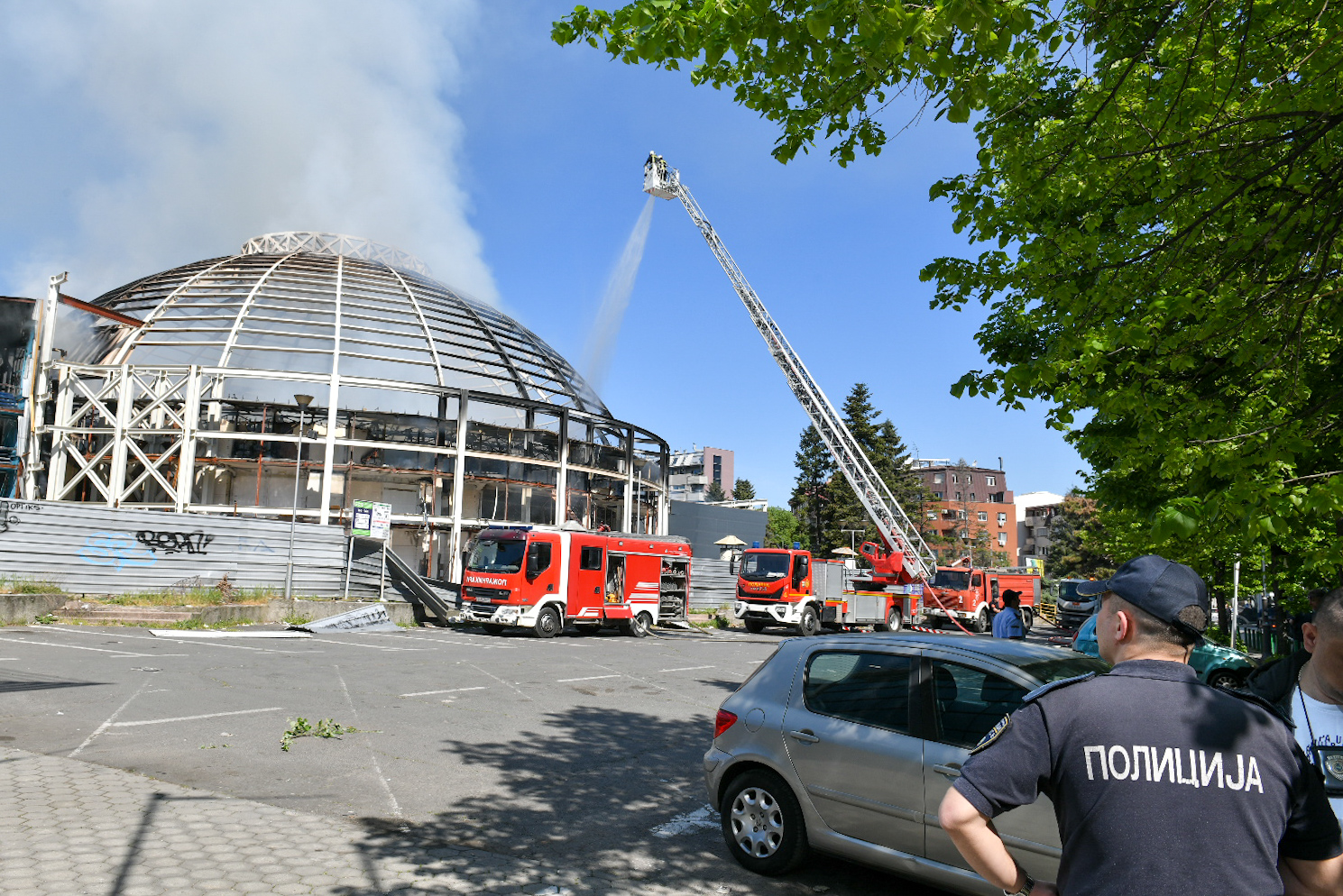 – Во 9 часот и 50 минути пријавена е дојава за настанат пожар во Универзална сала. Веднаш беа испратени две противпожарни возила од блискиот потцентар во населбата Тафталиџе коишто уште при доаѓањето забележаа висок столб од чад и веднаш побараа дополнителна помош. За релативно кратко време и благодарение на пожртвуваноста на колегите пожарот беше ставен под контрола иако имавме висока температура во самиот објект. Би сакал да се заблагодарам и на полициските службеници кои ни овозможија побрзо да пристигнеме, како и на јавните претпријатија „Комунална хигиена“ и „Водовод“ кои се потрудија континуирано да не снабдуваат со вода за да интервенцијата биде што е можно поуспешна – рече Томески.