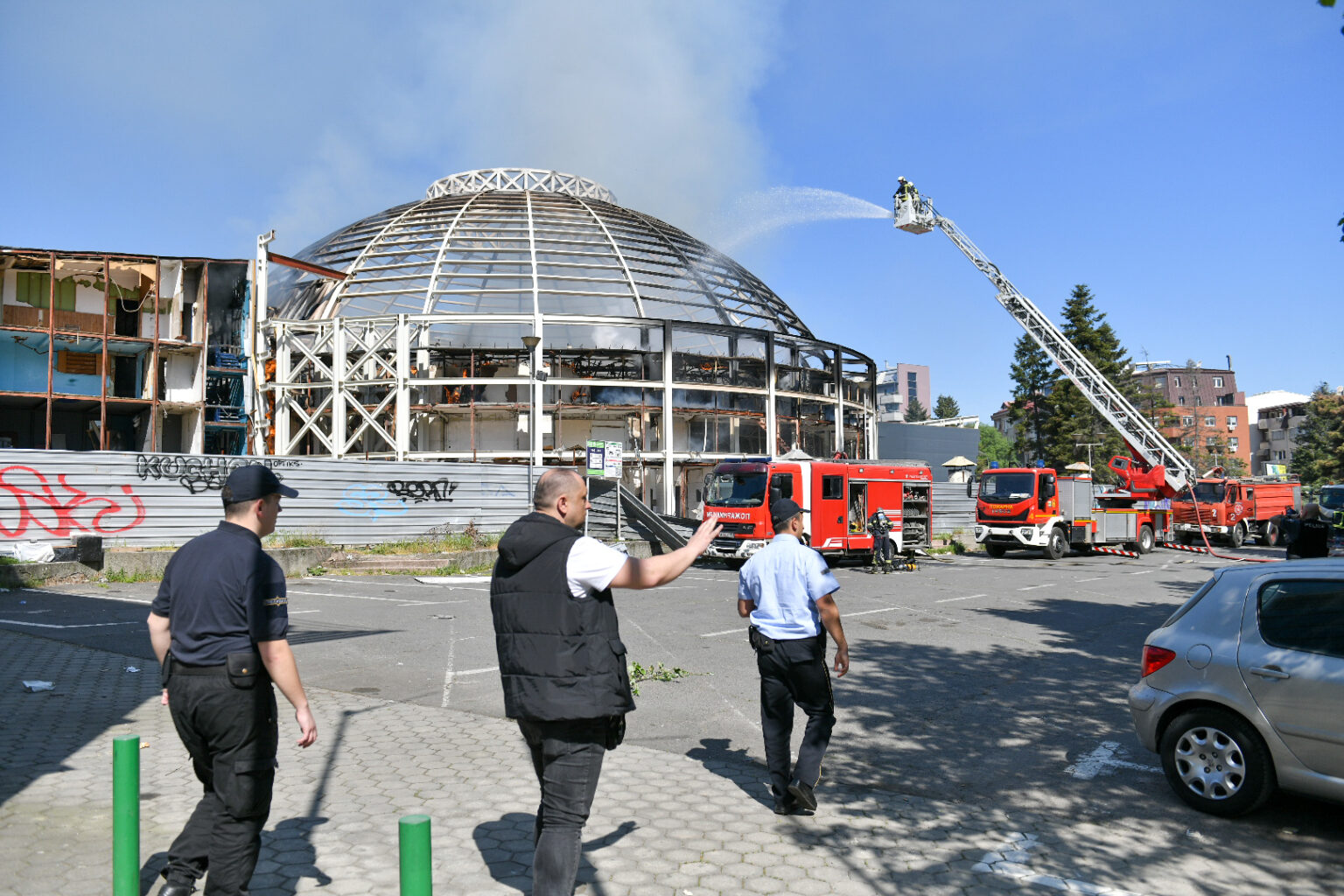 Тој додаде дека нема повредени, она што го добил како информација е дека немало градежни работи во моментот, така што, поосочи, нема повредени, само материјалната штета е евидентна. Рече дека имало густ чад, висок столб на чад, температурата била многу висока и на соседните објекти кои се во непосредна близина. На салата има оштетување на ролетните.