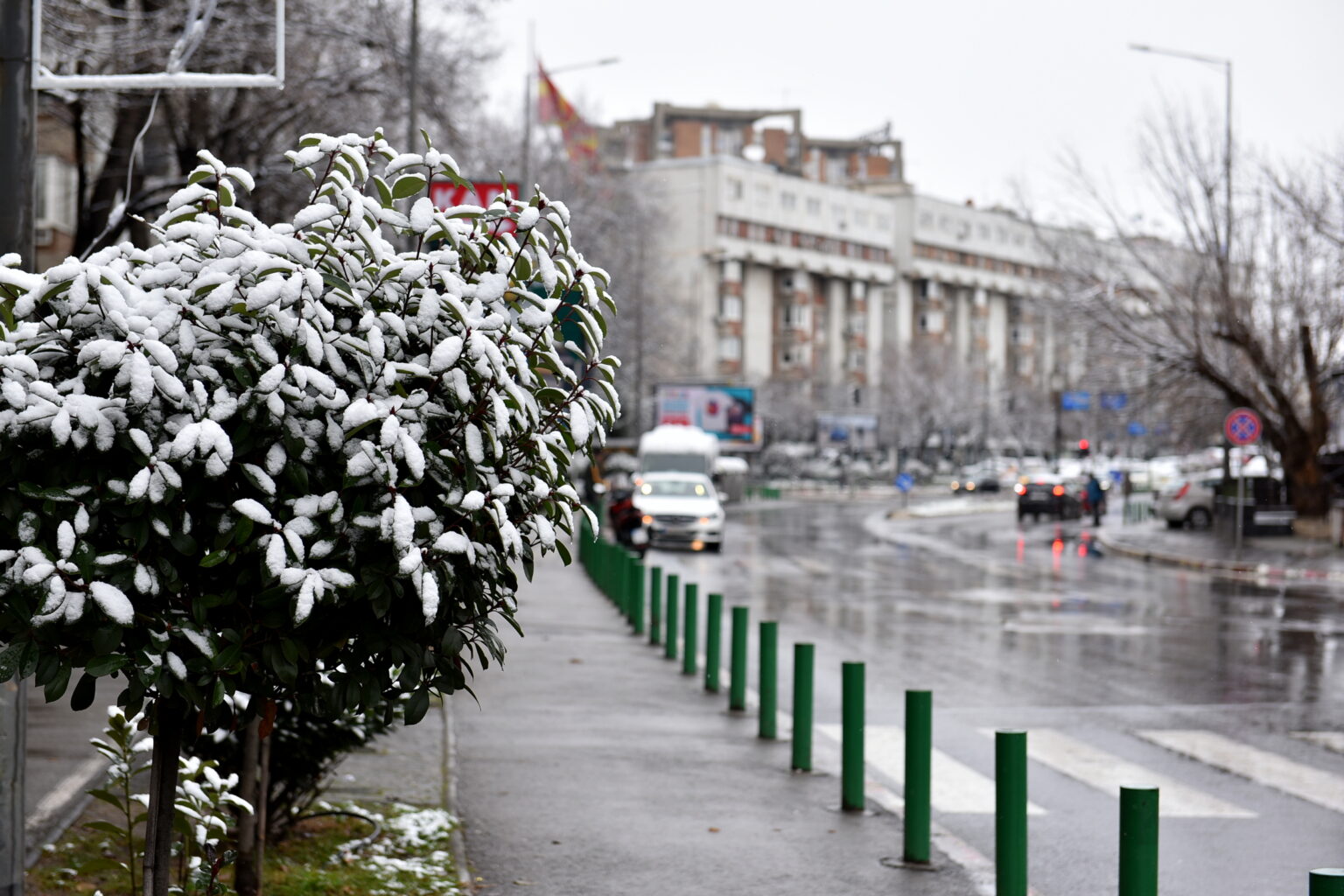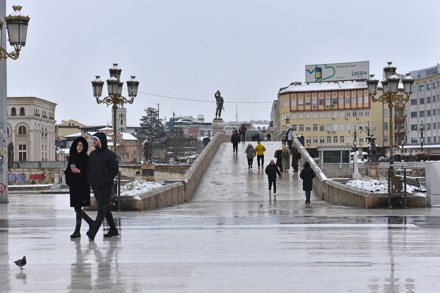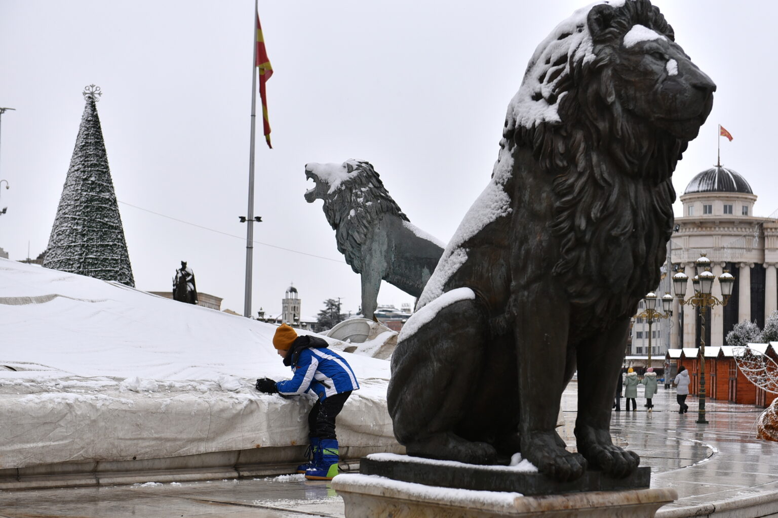 Првиот снег зимава, во Скопје стигна на радост на најмладите, што може да се забележи преку фотографиите на „Нова Македонија“. Времето денеска ќе биде облачно и студено, претежно со врнежи од снег.