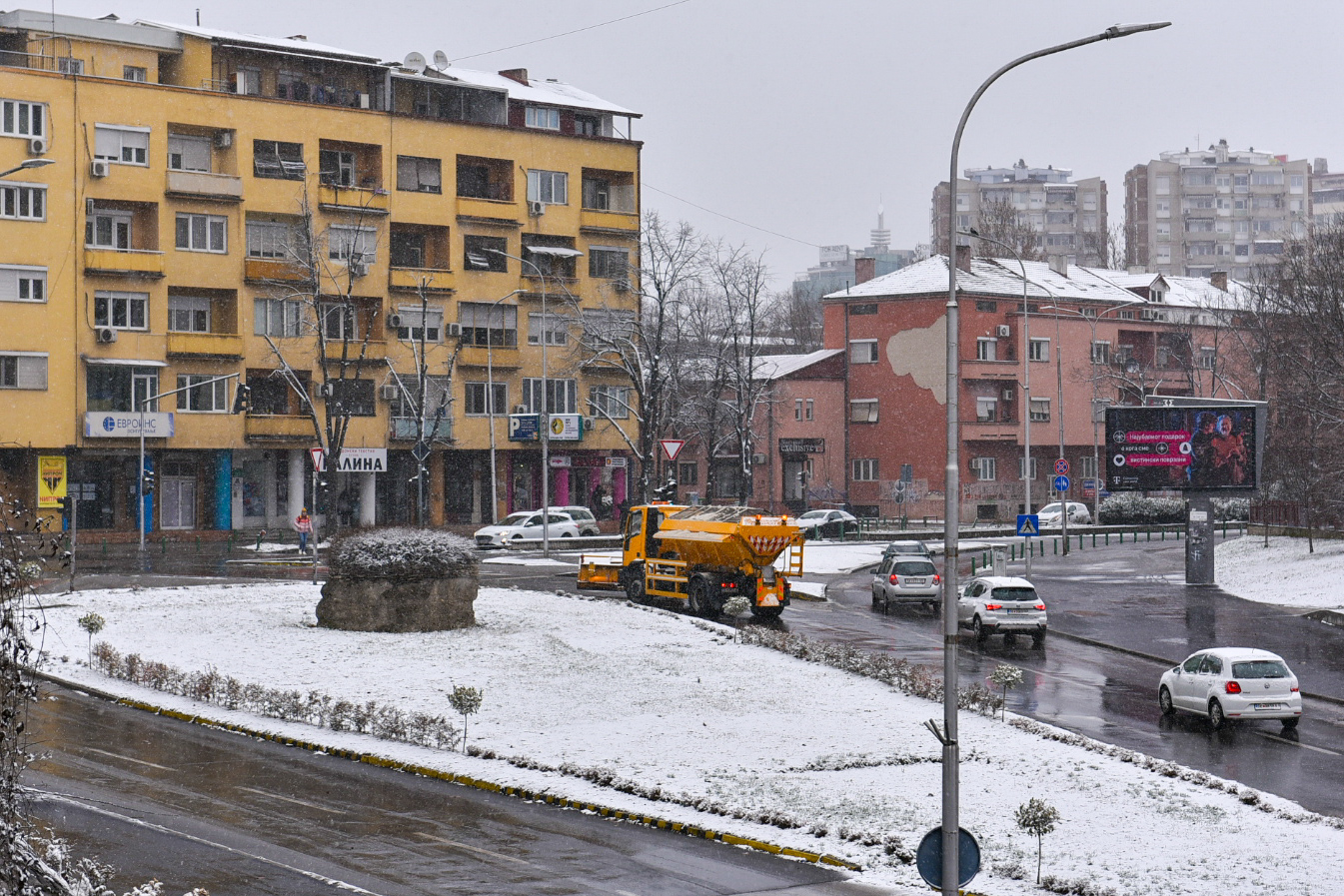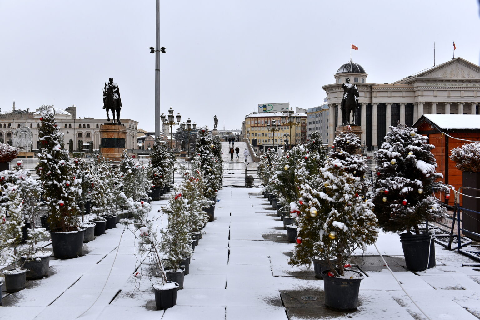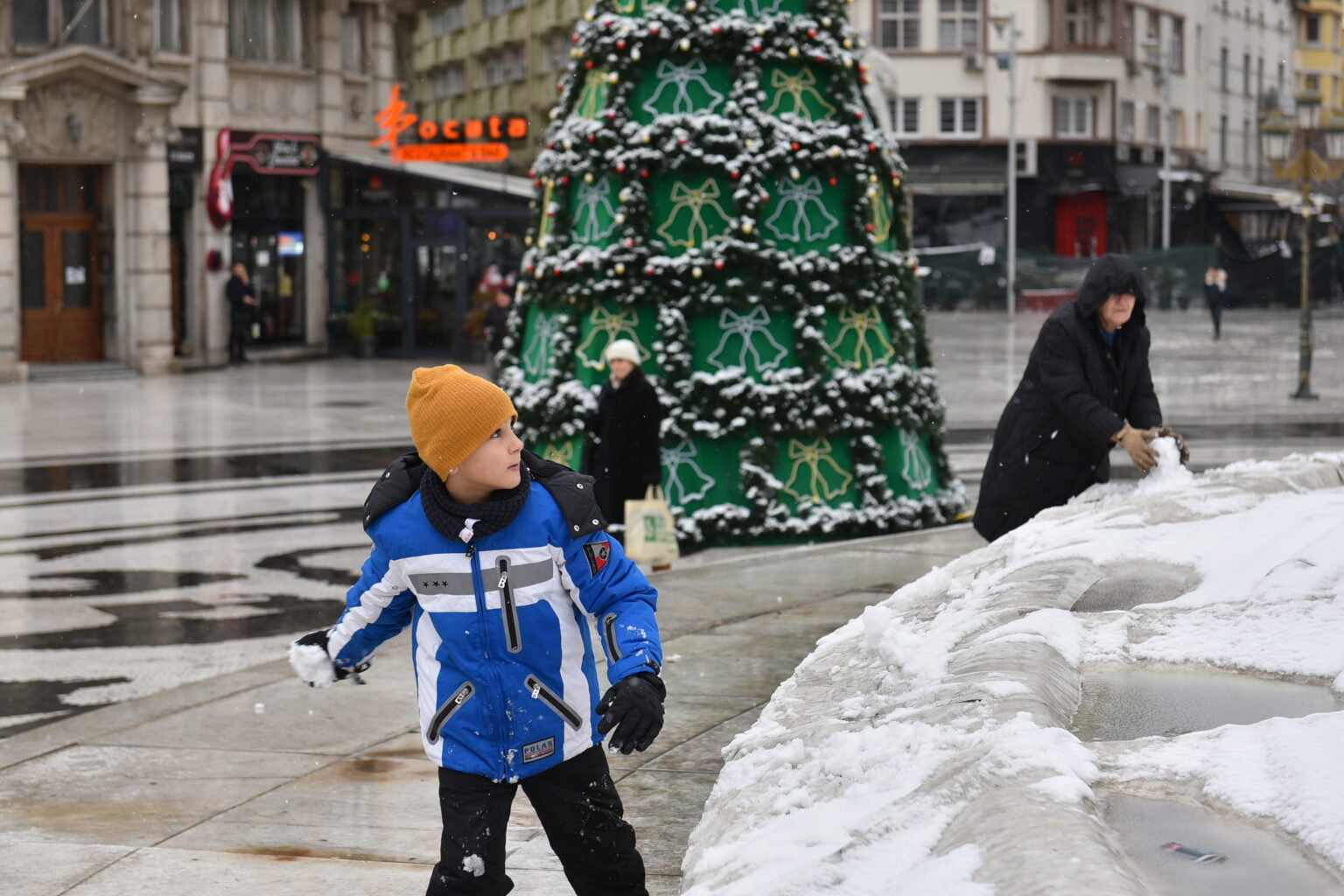 Првиот снег зимава, во Скопје стигна на радост на најмладите, што може да се забележи преку фотографиите на „Нова Македонија“. Времето денеска ќе биде облачно и студено, претежно со врнежи од снег.