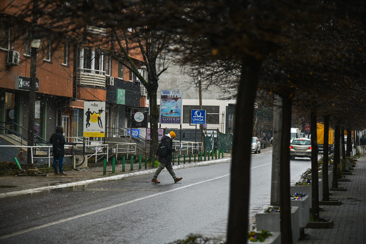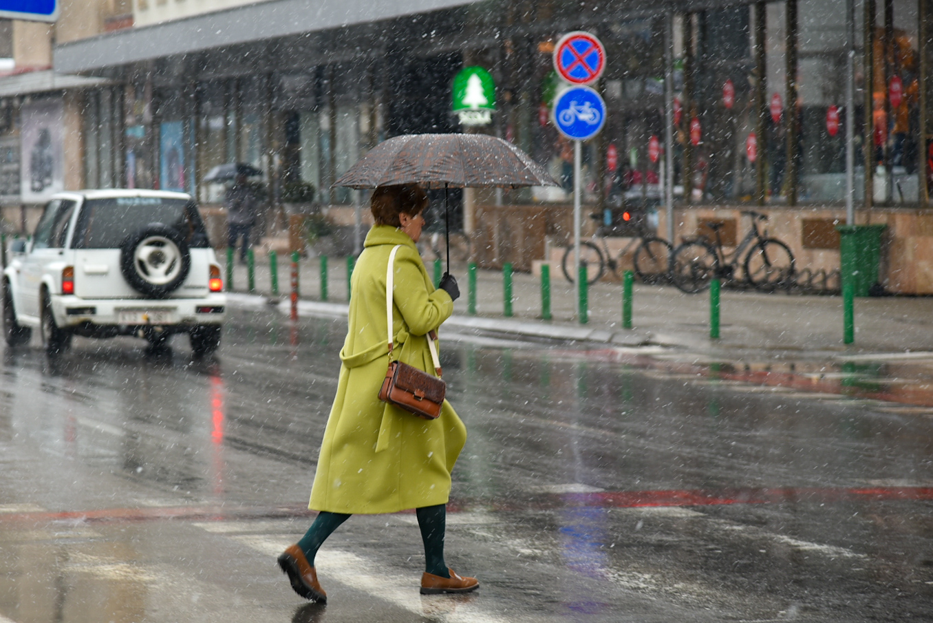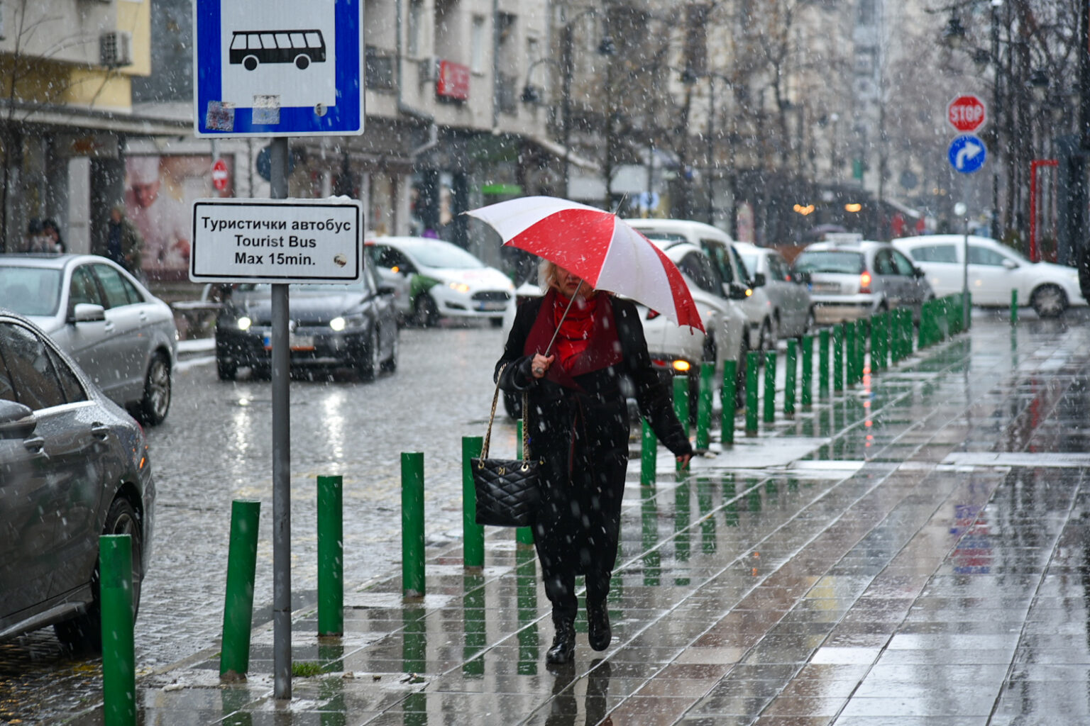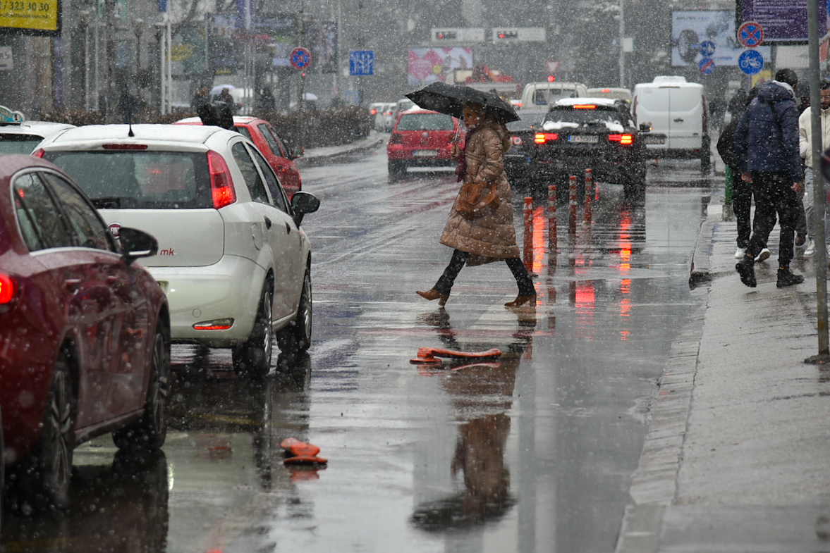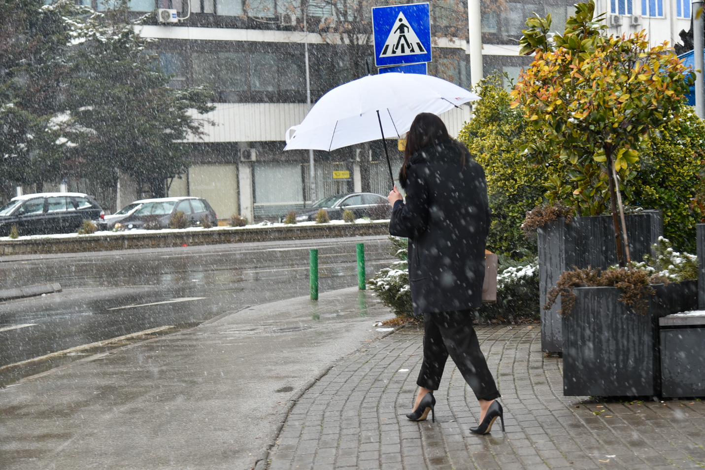 По најавата на Управата за хидрометеоролошки работи, вланиот и студен бран донесе снег и во главниот град.