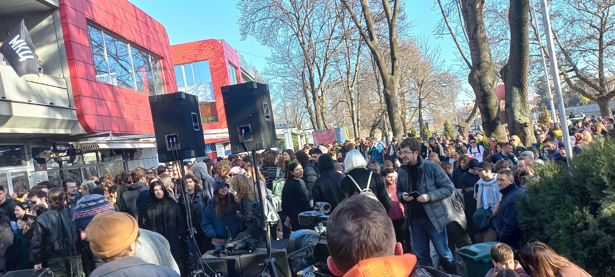 Ентузијасти и љубители на независната култура попладнево се собраа на платото пред Младинскиот културен центар во знак на протест против политизирањето на културната установа. Собирот што е предвидено да трае до 16 часот, е организиран од колективот „Гола планина“.