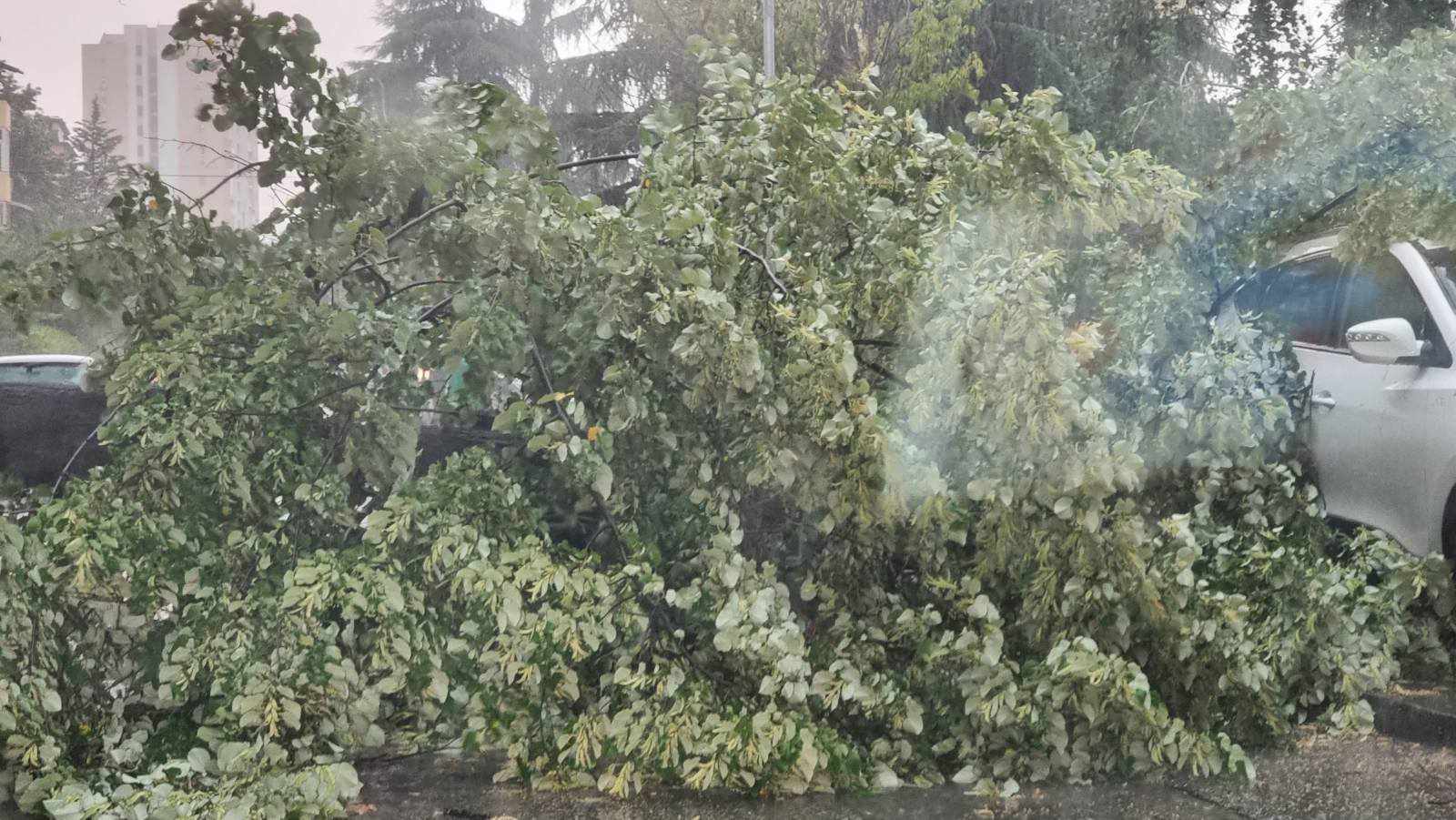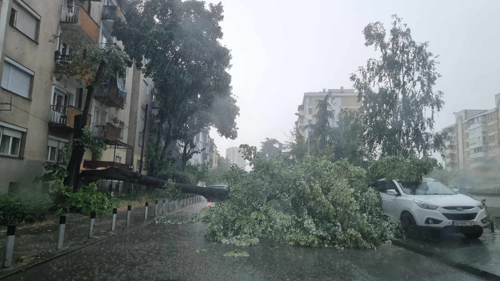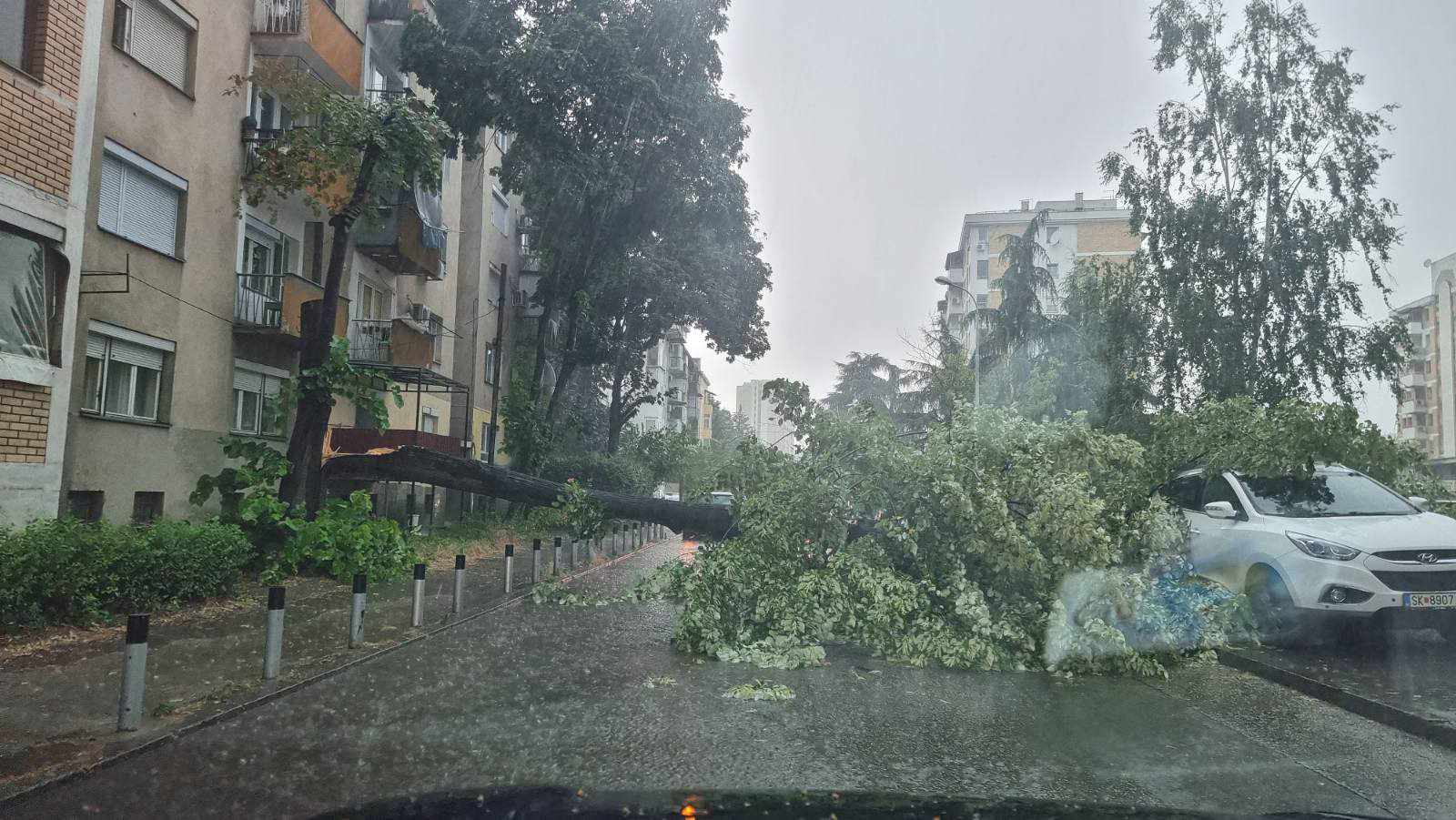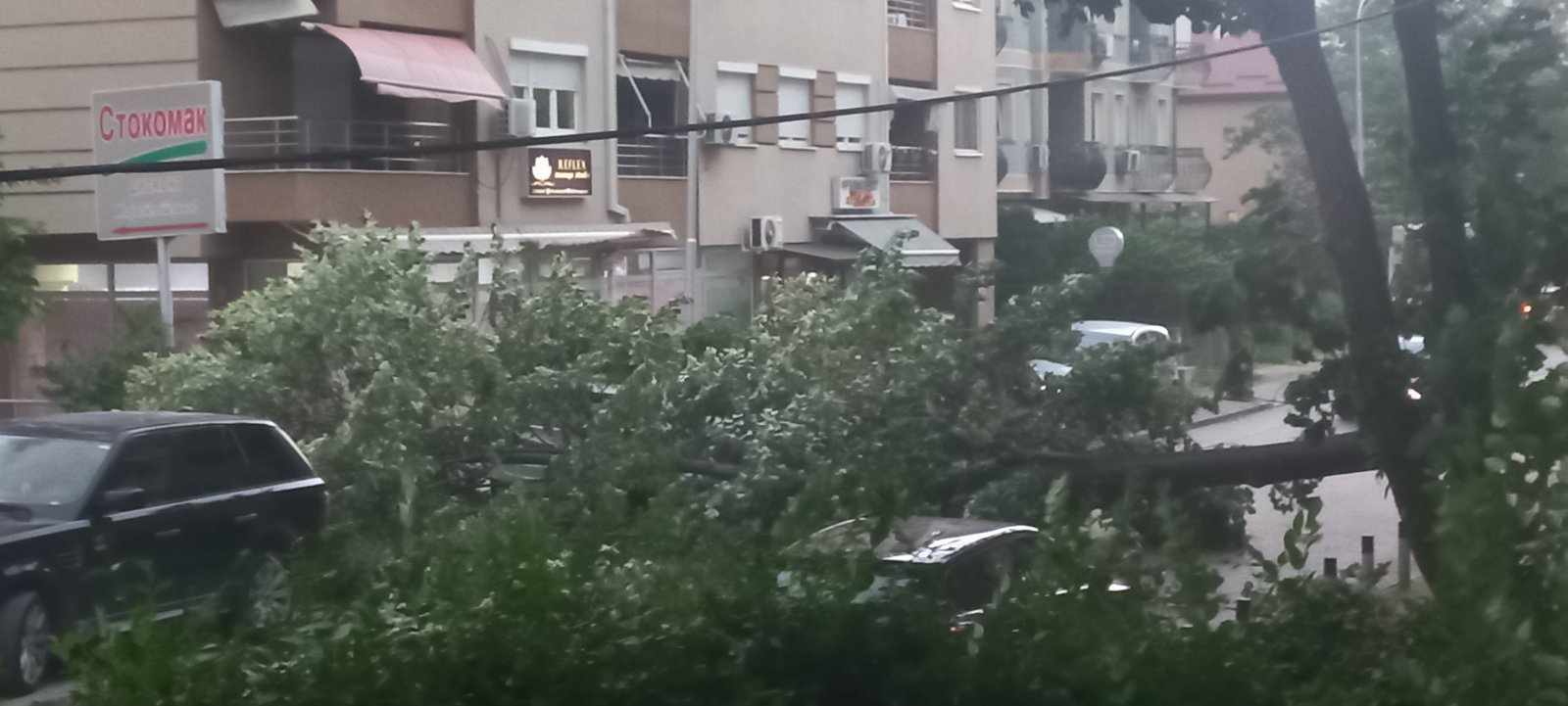 По транспортен Центар, во скопската населба Аеродром, на улицата Симеон Кавракиров, падна дрво.