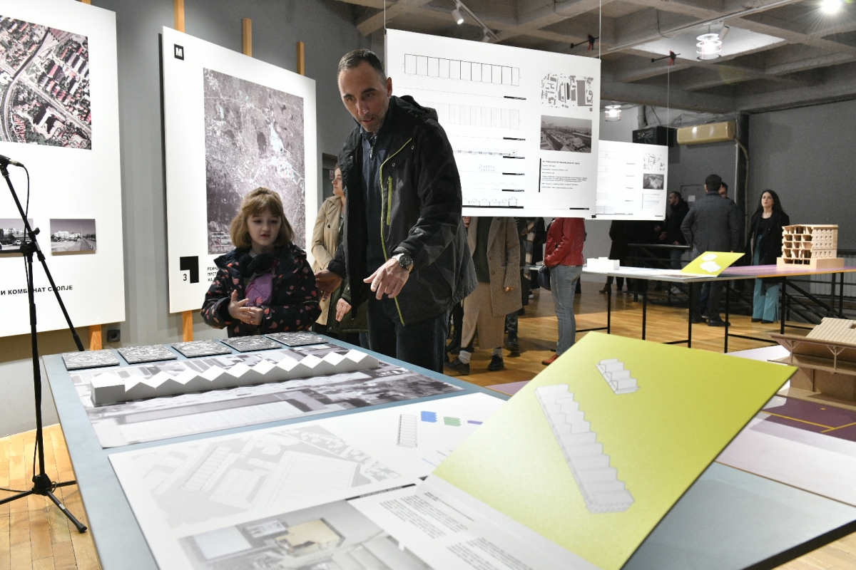 – Причина за моето задоволство е темата што овој проект ја обработува, а е суштински поврзана со развојот на градовите и во овој конкретен случај, со развојот на Скопје. Современите градови или поточно градовите на модерната, се градови на капиталот, планирани и градени врз основа на фунционалноста и потребите на индустријата и работата. Но, кои се новите индустрии и како тие ќе ги обликуваат новите градови? Во 2022 година имав можност да учествувам во студиите за изработка на националната стратегија за паметна специјализација, во кои во нашата држава, како најперспективни за понатамошен развој на општетсвото и економијата беа детектирани неколку домени, меѓу другите паметната индустрија 2.0 и паметните градови. И повторно, се преплетуваат идната индустрија и идните градови. Работата се менува, а со тоа и работниците, кои се повеќе стануваат господари на своето време и господари на нивниот простор. Тоа се креаторите на идните индустрии и на нашите идни градови. Затоа, слободно можам да констатирам дека идните индустрии се веќе тука, во нашите градови, и веќе ги обликуваат работните места, идните простори на работа и идните градови. Затоа, подобро е да сме подготвени за нив – истакна Огнен Марина пред присутните на изложбата.