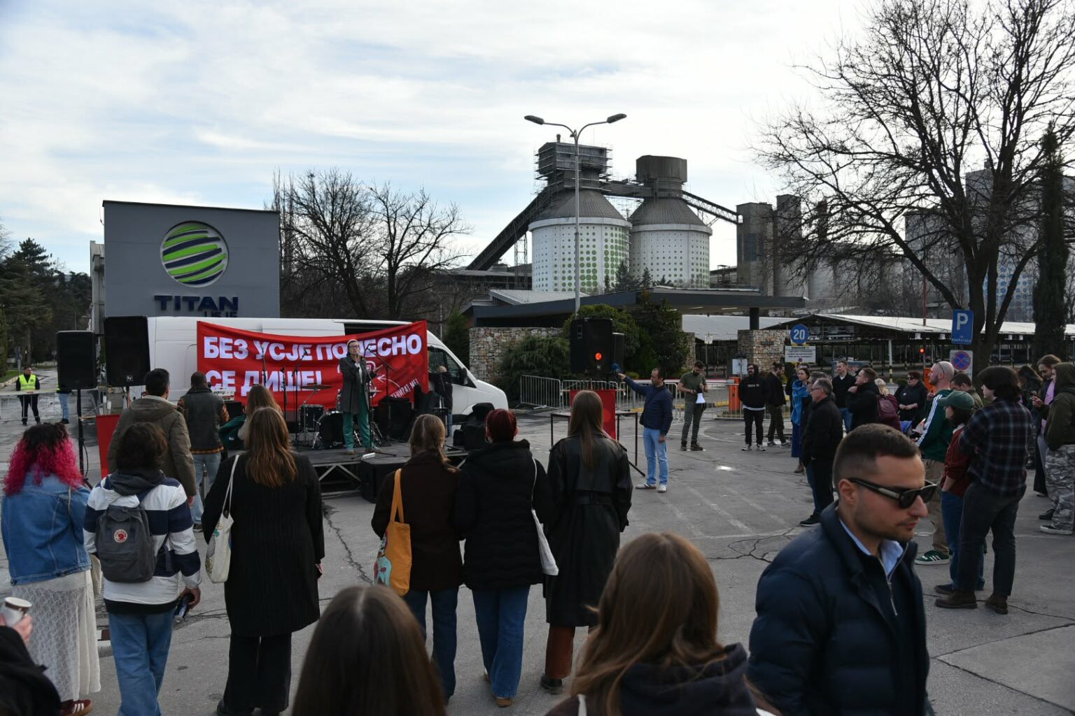 Мирен протест денеска се одржува пред главната капија на цементарницата Титан Усје, каде граѓани се собраа за да ги изразат своите барања под слоганот „Без Усје полесно се дише“.