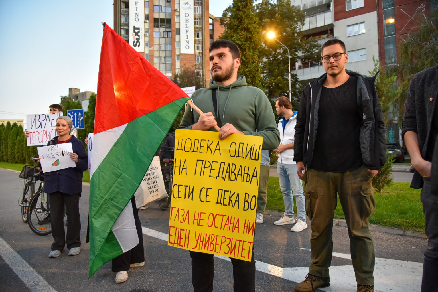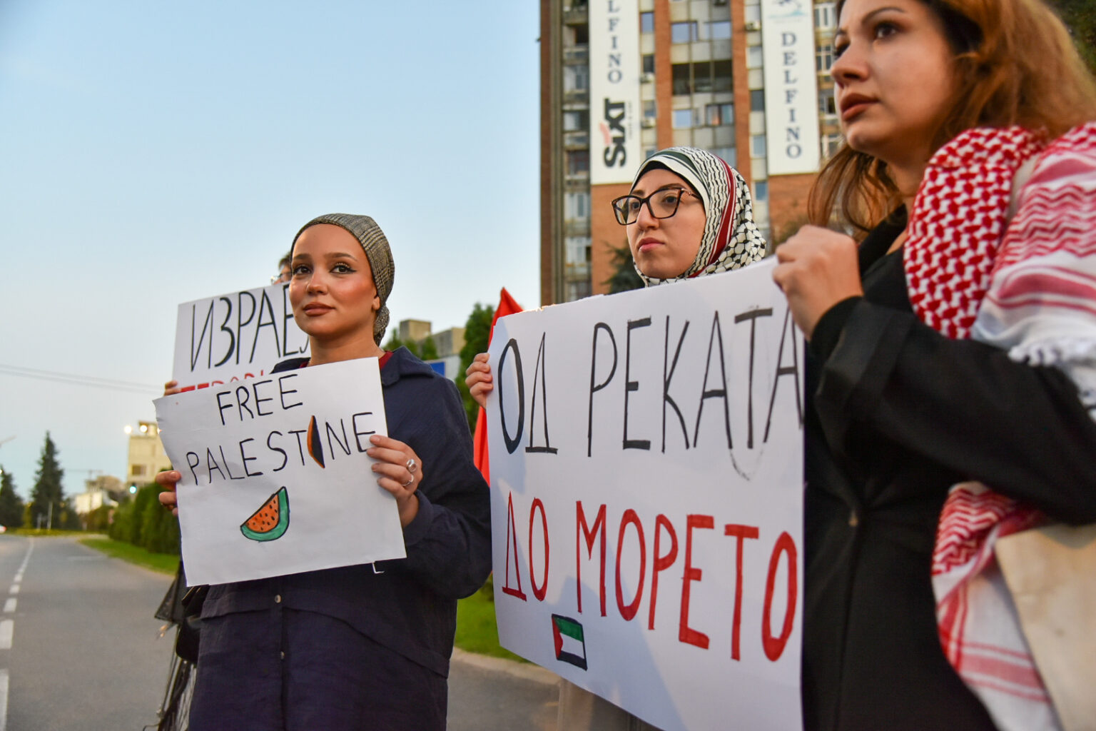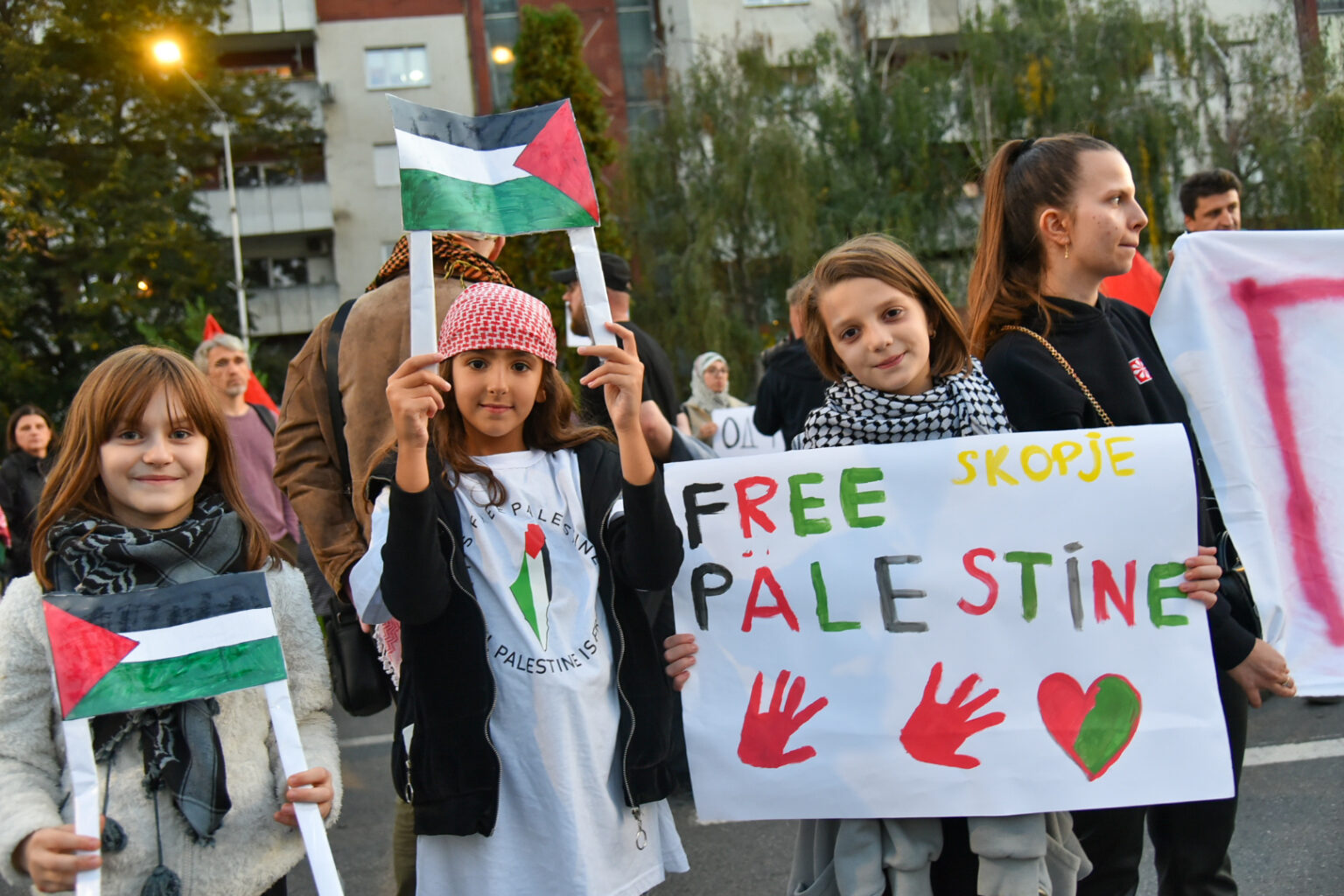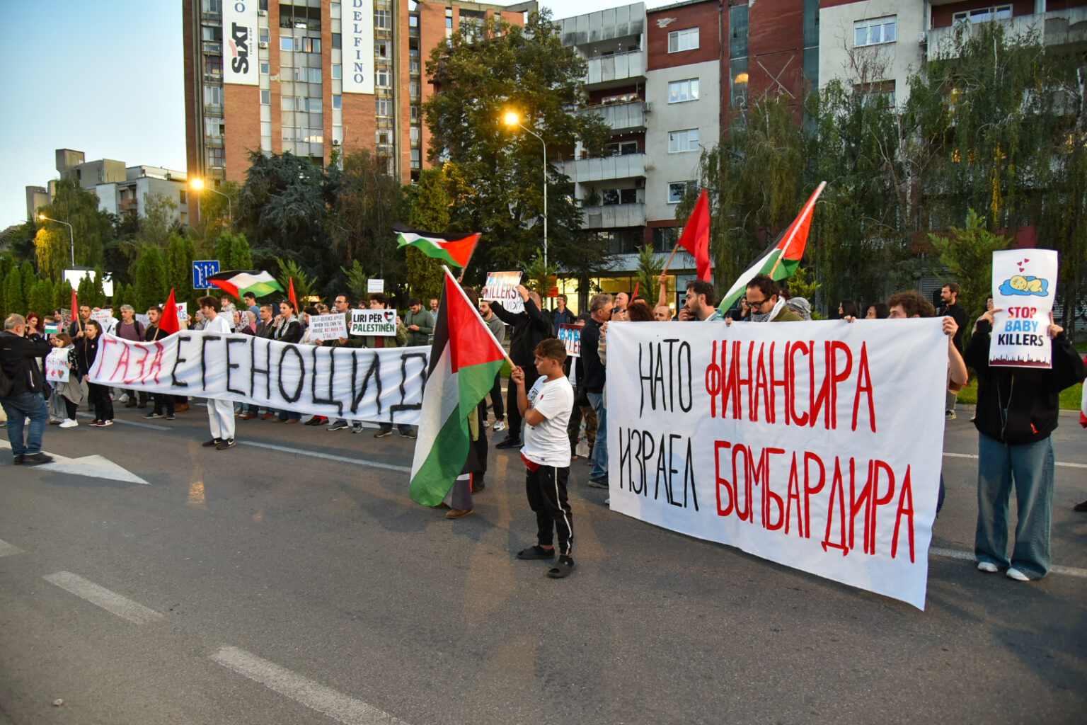 Протестантите носеа транспаренти со написи „Слобода за Палестина“, „Газа е геноцид“… Протестантите извикуваа „Долу апартхејд”, „Солидарност” и други пароли.