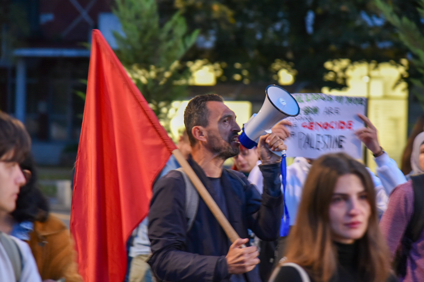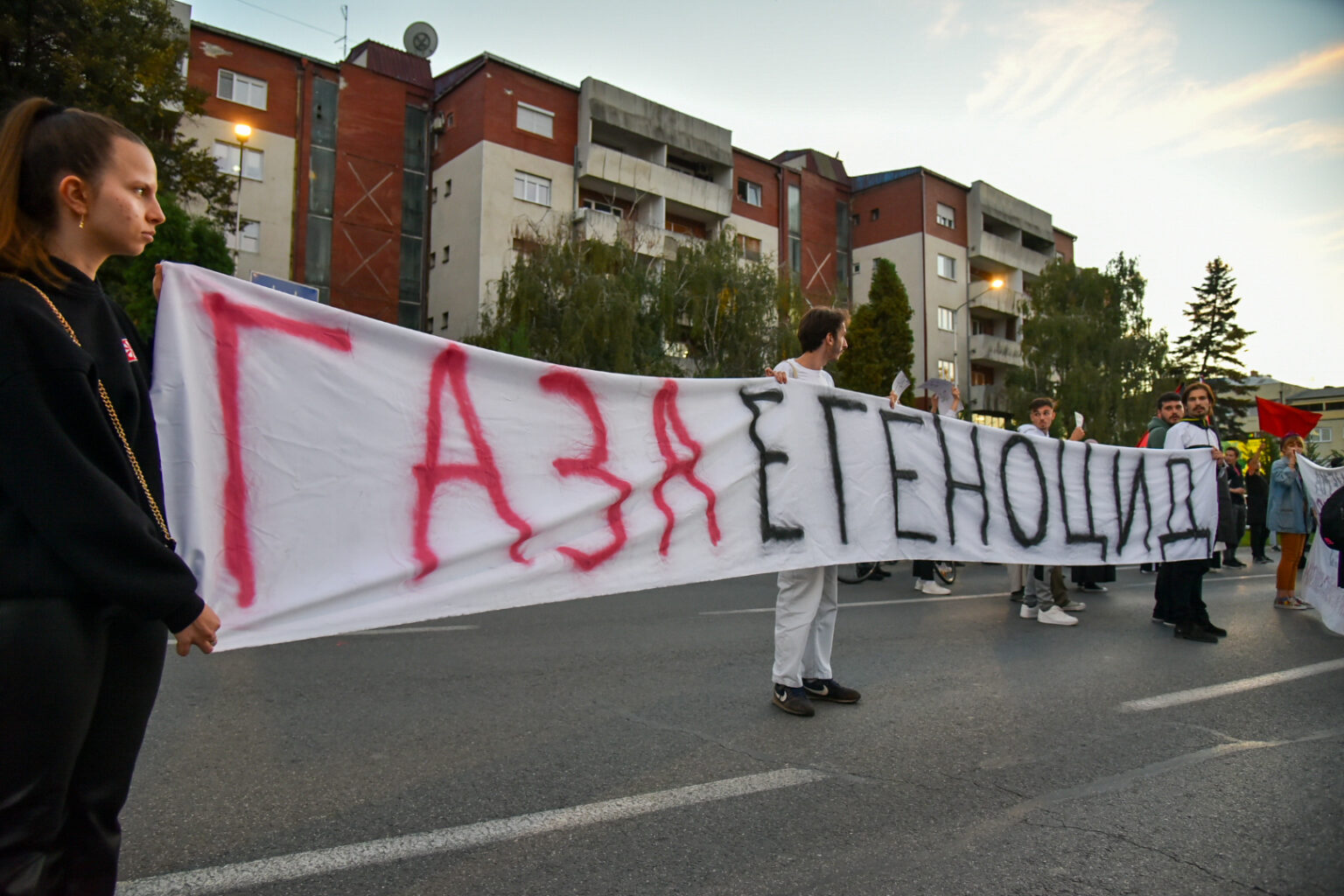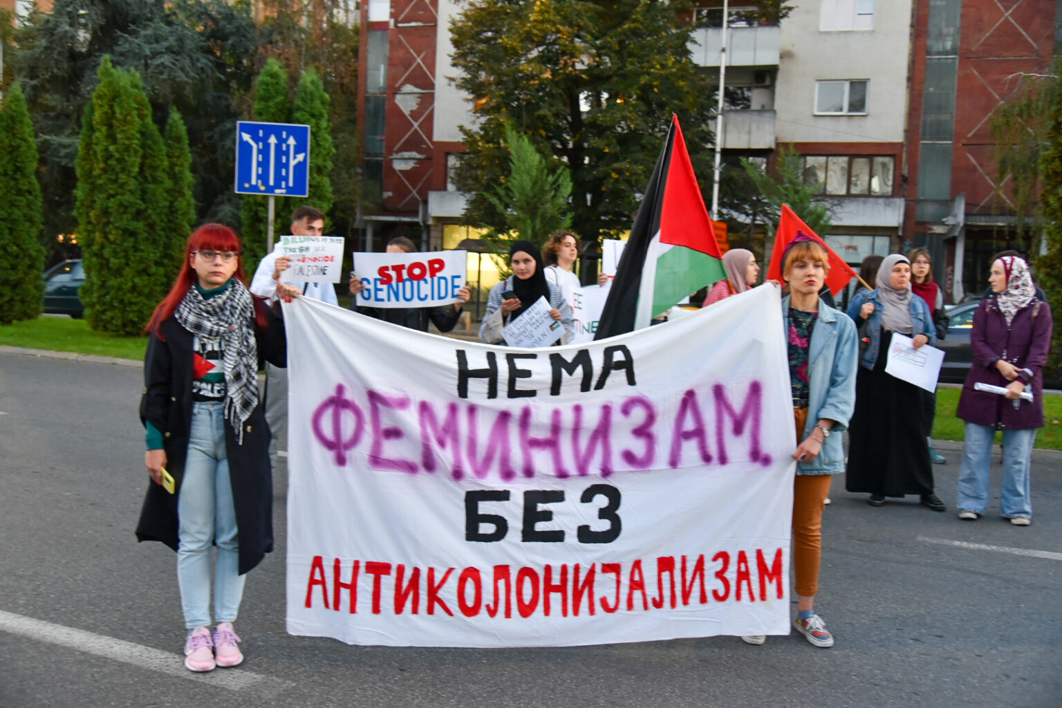 Протестантите носеа транспаренти со написи „Слобода за Палестина“, „Газа е геноцид“… Протестантите извикуваа „Долу апартхејд”, „Солидарност” и други пароли.