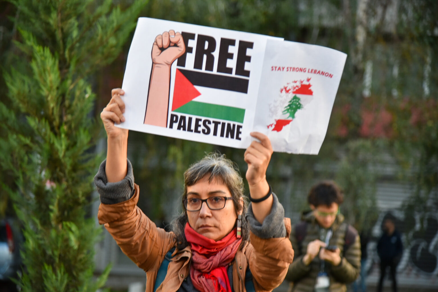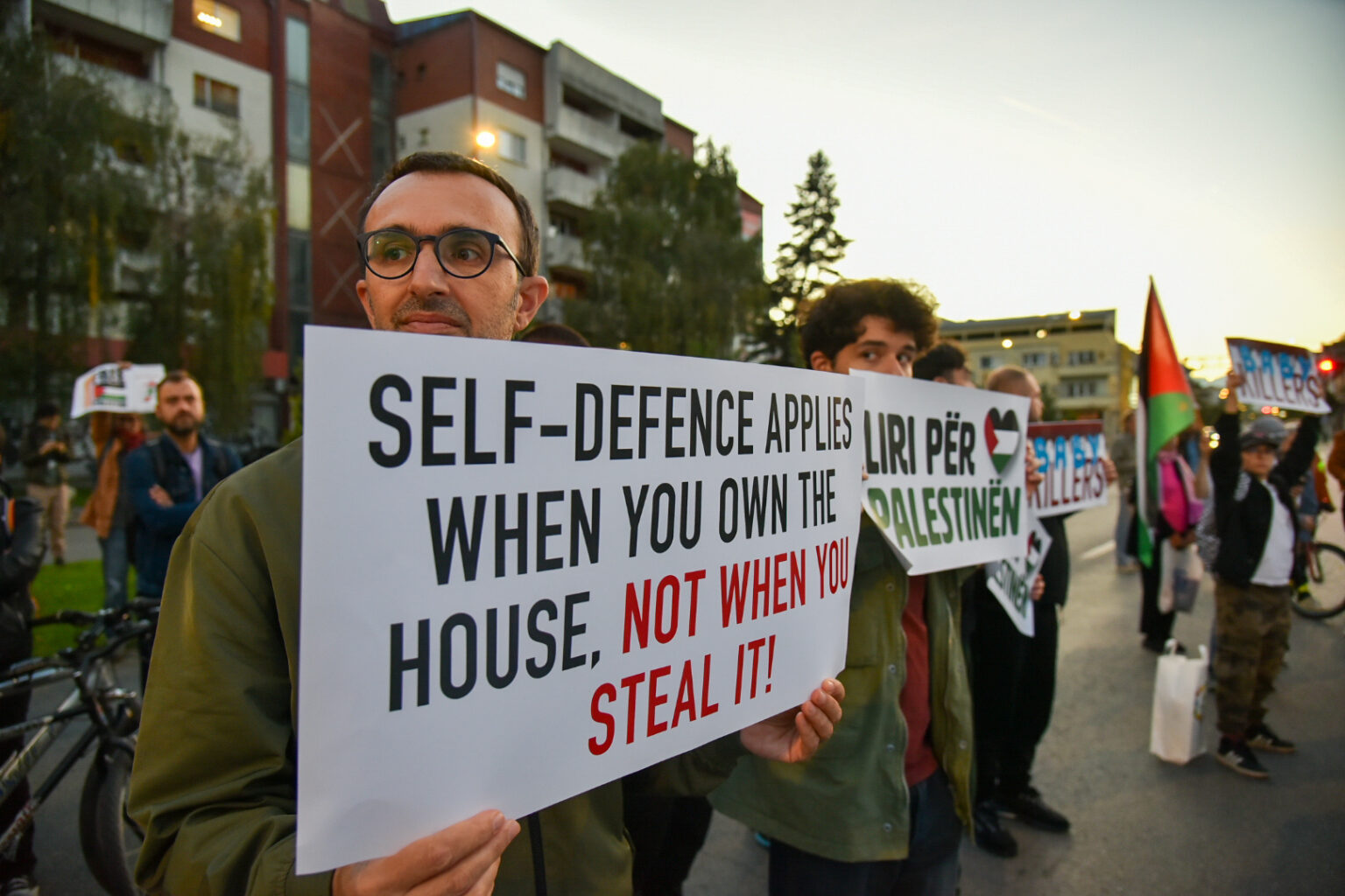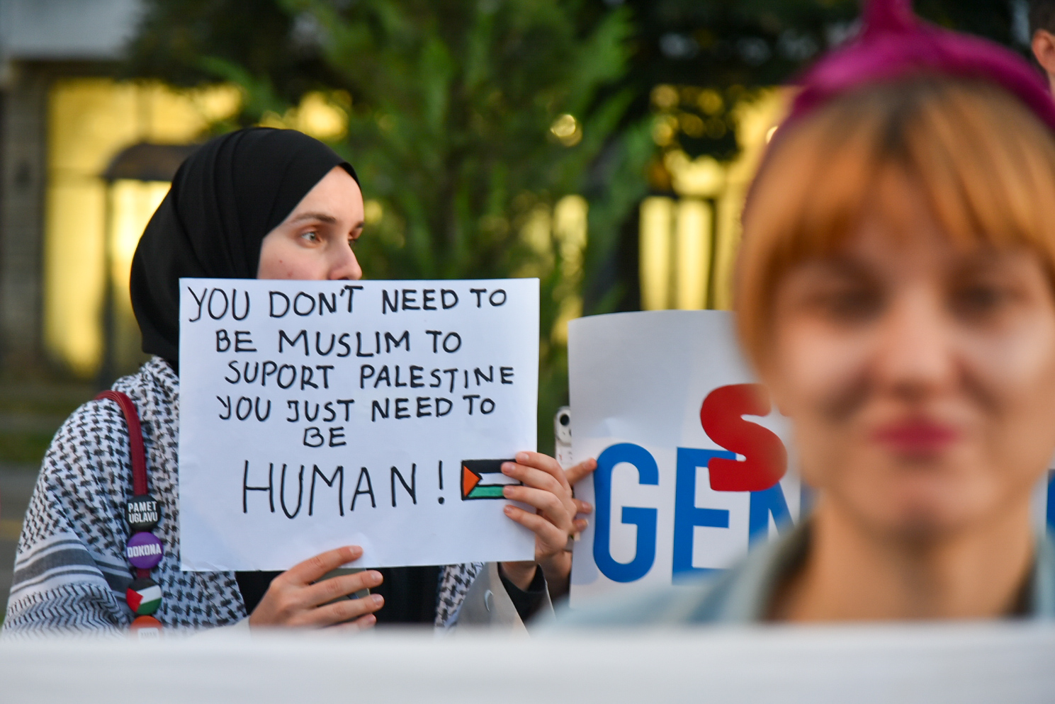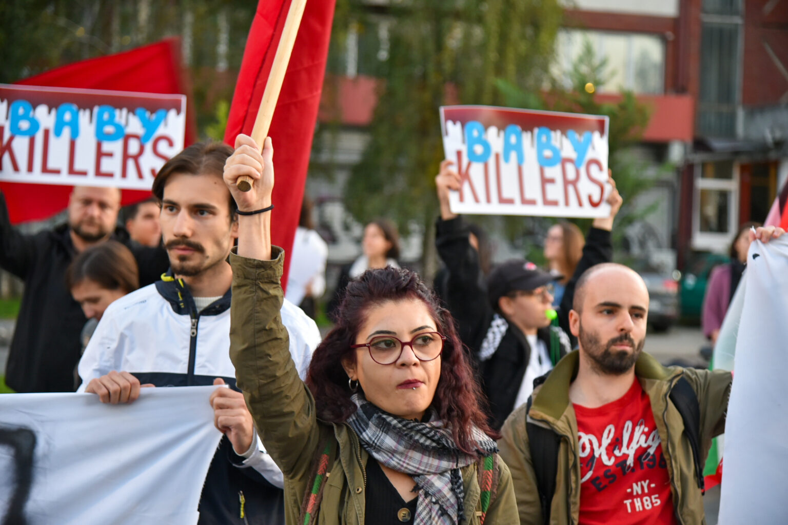 Протестантите носеа транспаренти со написи „Слобода за Палестина“, „Газа е геноцид“… Протестантите извикуваа „Долу апартхејд”, „Солидарност” и други пароли.