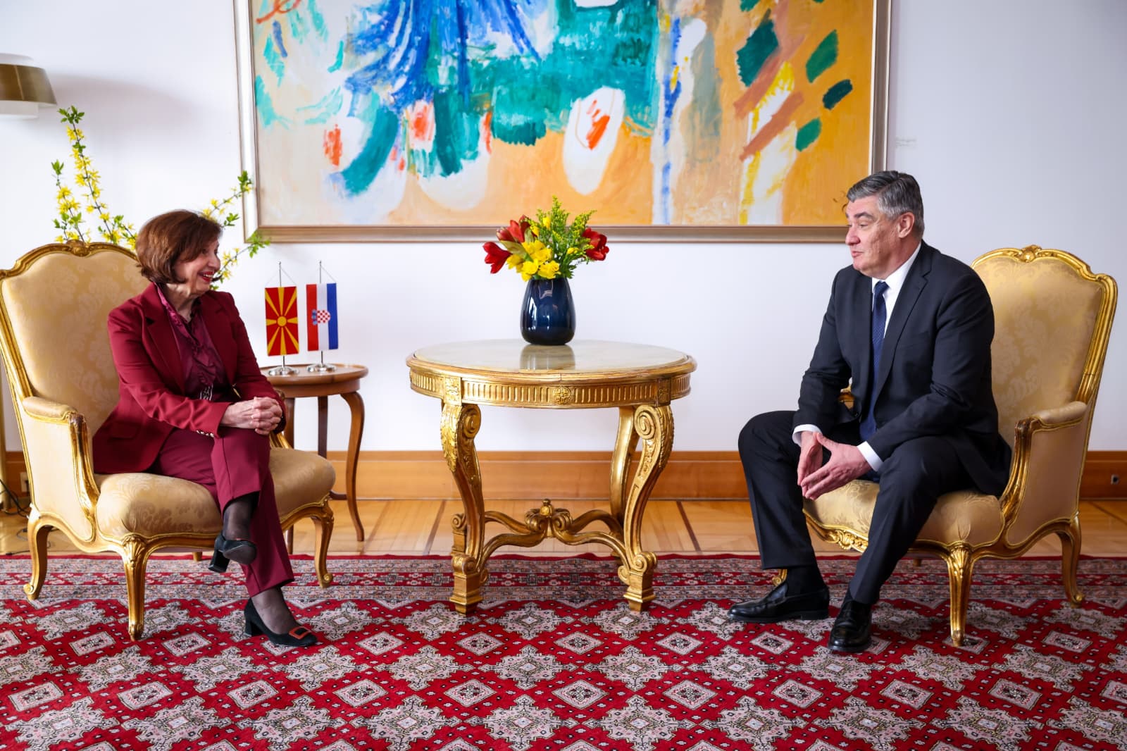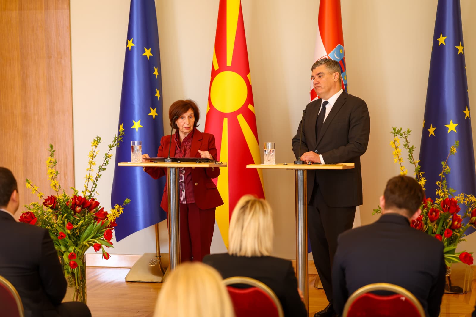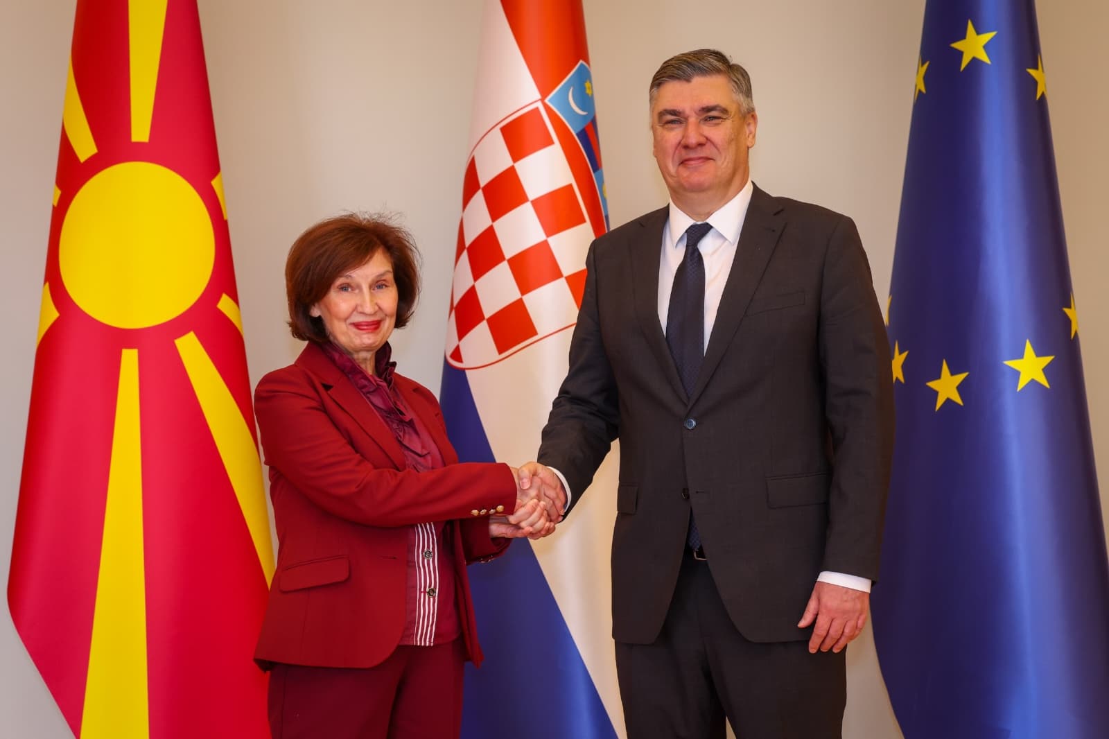 Претседателката Гордана Силјановска-Давкова, денеска, во Загреб, со највисоки државни и воени почести беше пречекана од хрватскиот претседател Зоран Милановиќ. Пред прес-конференцијата тие имаа тет-а-тет средба, а беше одржан и пленарен состанок на делегациите на двете земји.