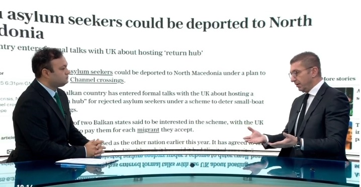 Претседателот на Владата Христијан Мицкоски вечерва изјави дека не се точни пишувањата на британските медиуми во врска со носење мигранти во земјава.
