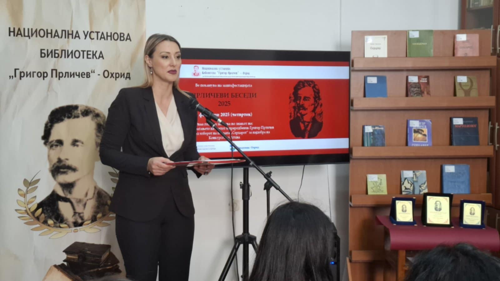 По изведбата на култните стихови од поемата „Сердарот“ во НУ Библиотека „Григор Прличев“ во Охрид, обраќање имаше в.д. директорката на Христина Трпеска, која истакна дека националната установа оваа година одбележува 75 години откако го носи името на големиот поет и преродбеник Григор Прличев.