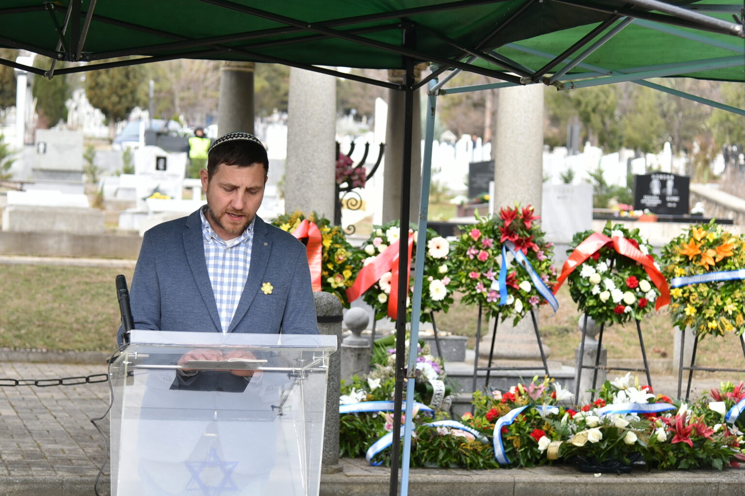 – Денеска им оддаваме почит на 7.144 Евреи од Македонија. На Марија, Пепо, Жоли, Бесале, Дора, Давид, Руфел, Јаков, Боена, Мари, Ештер и многу други Евреи од Македонија, кои загинаа трагично во логорот на смртта „Треблинка”. Седум илјади сто четириесет и четири Евреи од Штип, Битола и Скопје никогаш повеќе не ги видоа своите родни градови – рече претседателот на Еврејската заедница Пепо Леви во својот говор.