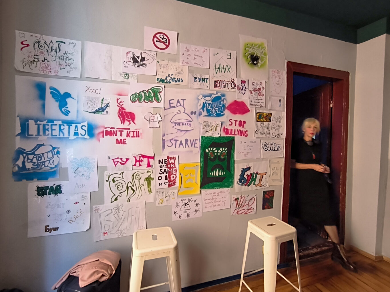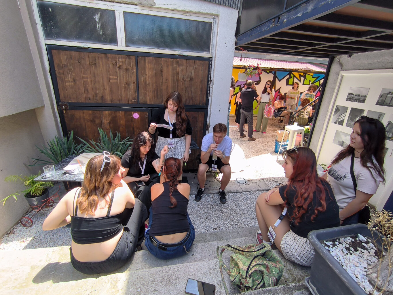 Учесниците се поделени во четири групи, а менторите Емилија Ристановска од Центарот за едукација и уметност – Хана и Гордан Георгиев од Форумот за разумни политики им помагаат на младите средношколци да ја разберат уметноста како одговор на општествените и политички случувања низ историјата.