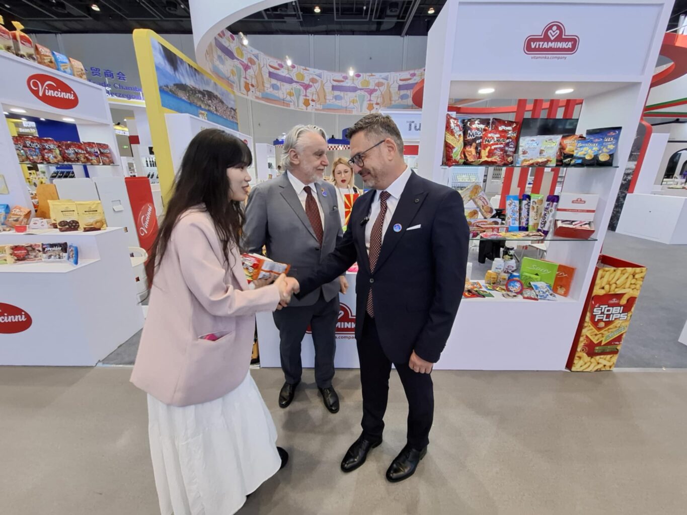 – Оваа посета е од исклучителна важност за Македонија, но и за сите останати 14 земји што се тука. Кина е четврти партнер на Македонија во однос на размената на стоки и трговијата и сметаме дека со изложувањето на 14 македонски компании на овој прекрасен штанд ќе има поголем интерес за извоз на наши производи и стоки на кинескиот пазар. Се надевам дека големиот дефицит што го имаме со НР Кина во иднина ќе биде помал, односно дека ќе ја подобриме соработката во интерес на нашите компании, со извоз на наши производи – изјави заменик-министерот за економија Ристески при посета на македонскиот штанд на саемот во Нингбо.