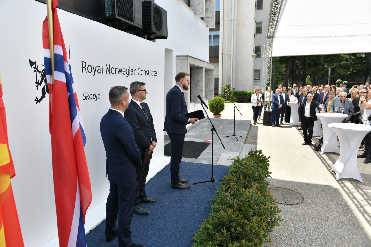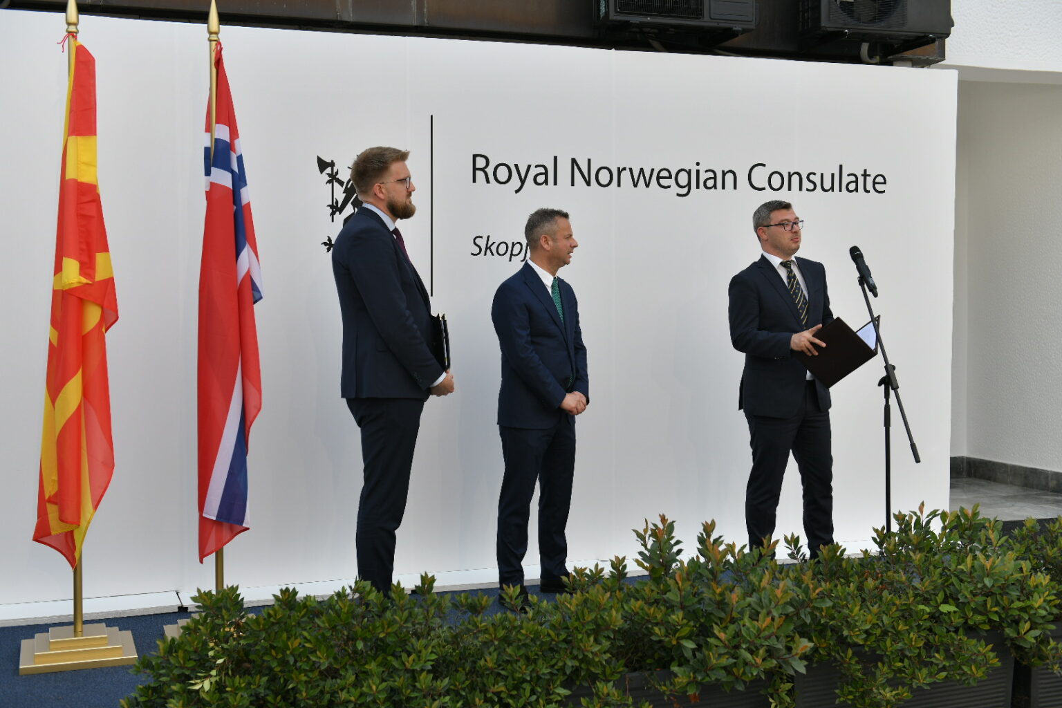 На официјалното отворање на конзулатот, во присуство на министри во Владата, претставници на бизнис заедницата, на дипломатскиот кор, пријатели и деловни соработници, се обрати државниот секретар во норвешкото МНР, Ајвинд Вад Петерсон, кој го потенцира одбележувањето, годинава, на 30 години од воспоставувањето на билатералните односи меѓу двете земји.