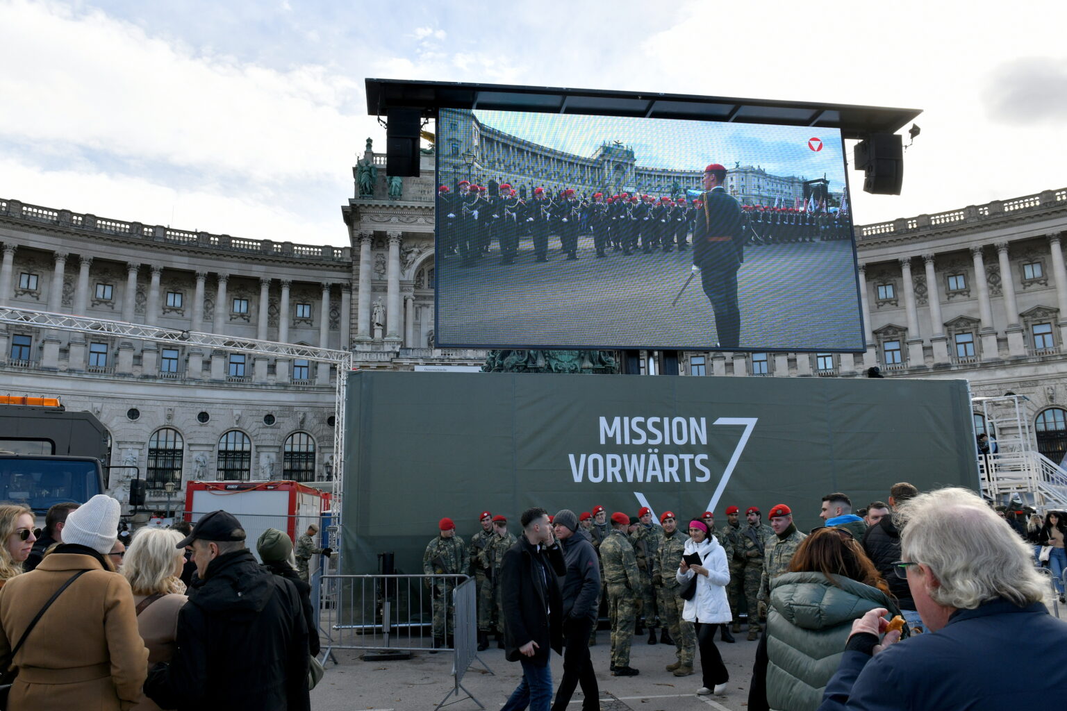 Свеченоста се одржуваше на повеќе локации низ Виена, главната воена парада на регрути и воени возила беше пред Хофбург а војската ги претставуваше своите единици и на други плоштади низ центарот на Виена.