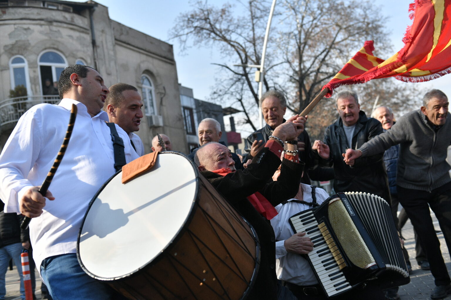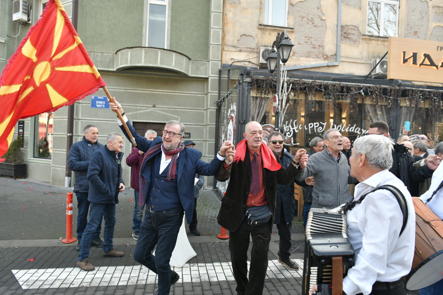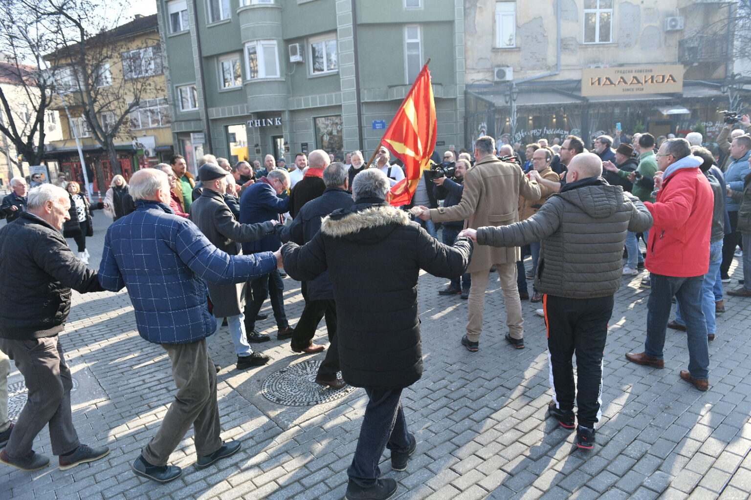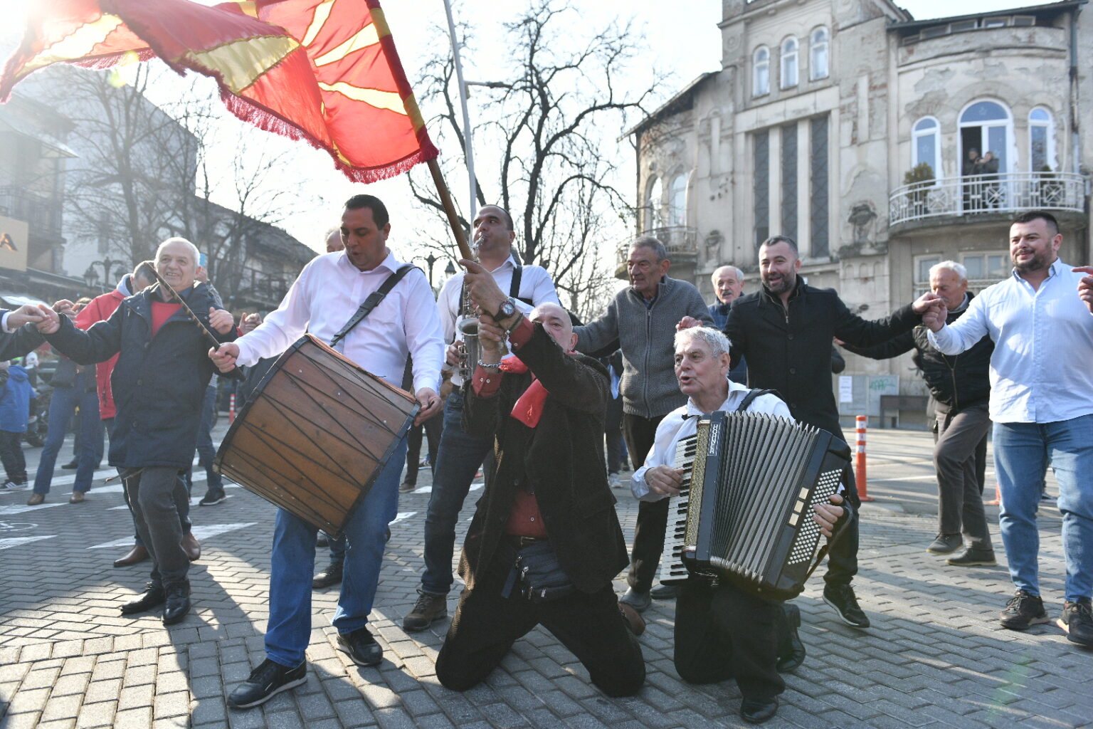 Со песна и оро пред култната кафеана „Идадија“ во Скопје, дебармаалци традиционално ја почнаа новата 2024 година.