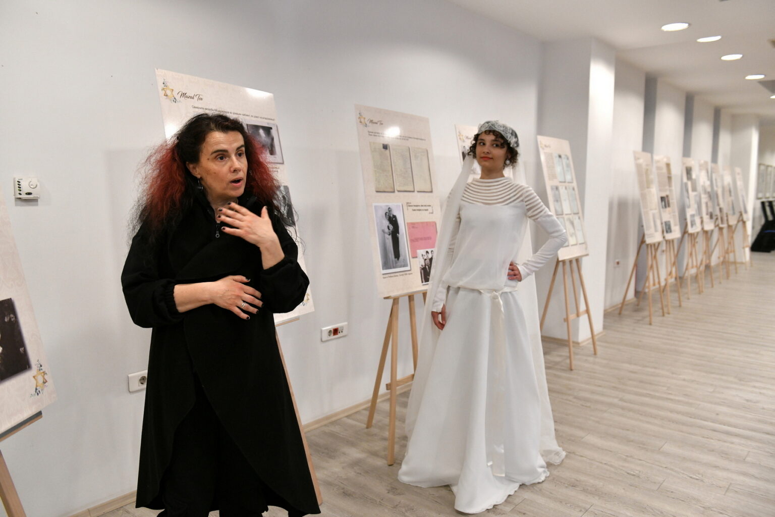 -Фустанот е интерпретација од неколку невестински фустани што ги имав видено во фотодокументацијата од еврејските семејства во Македонија. Во историјата на модата во тој периодот (1914-1941) големо било влијанието на европската мода (рамна силуета, спуштени колкови) со ориентални детали, нагласува Манева-Чупоска.
