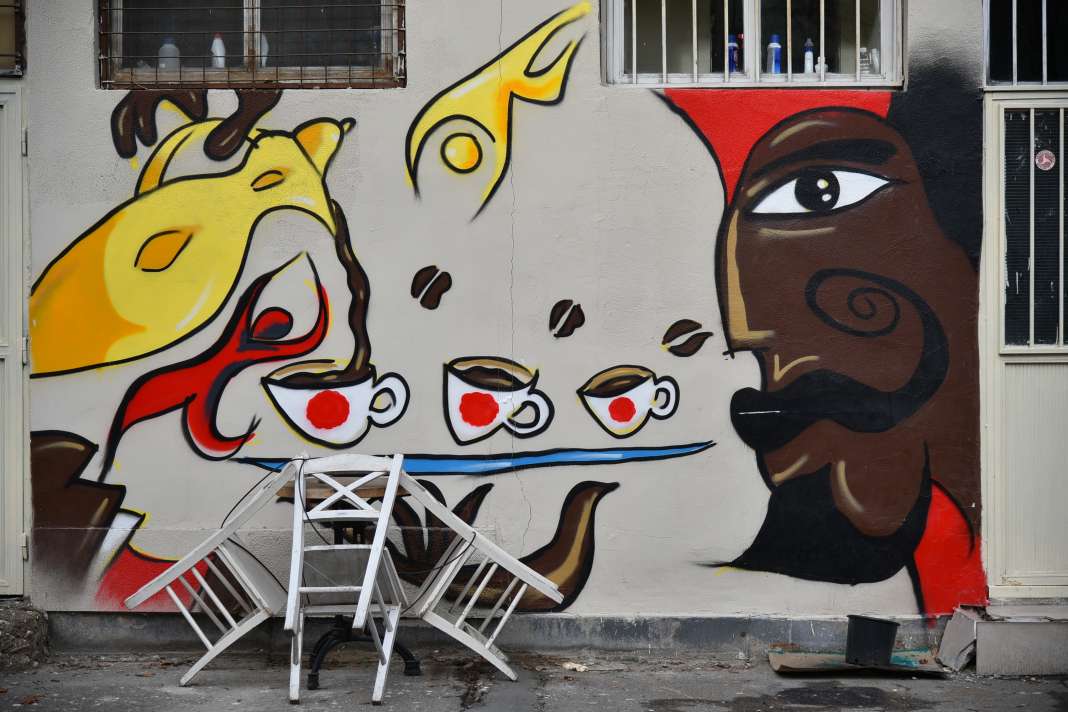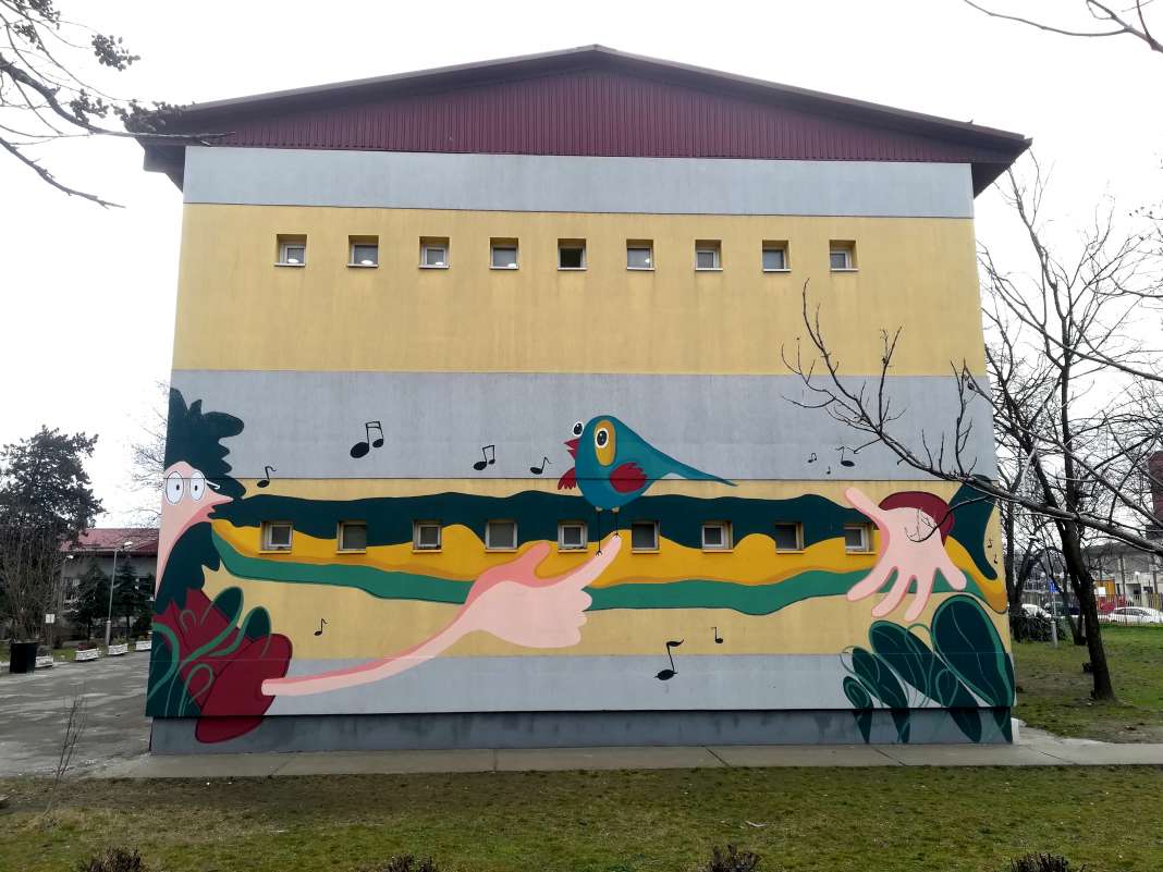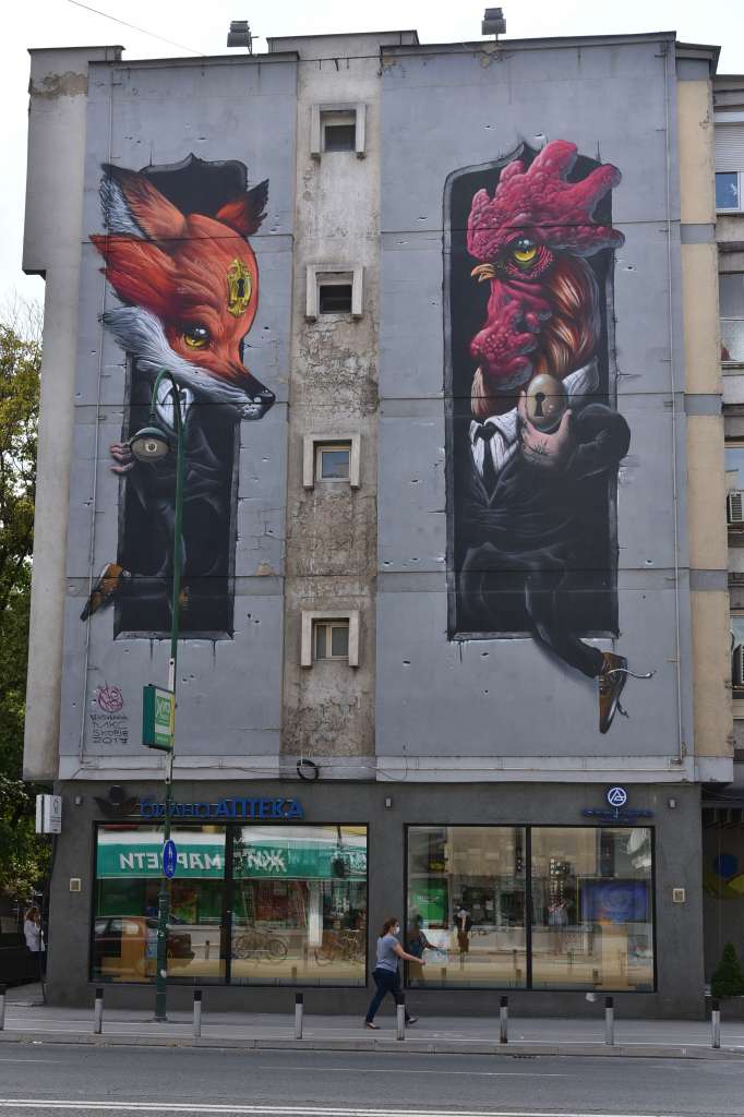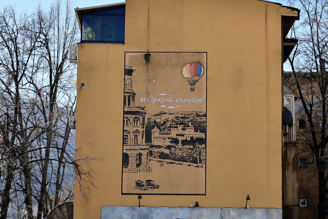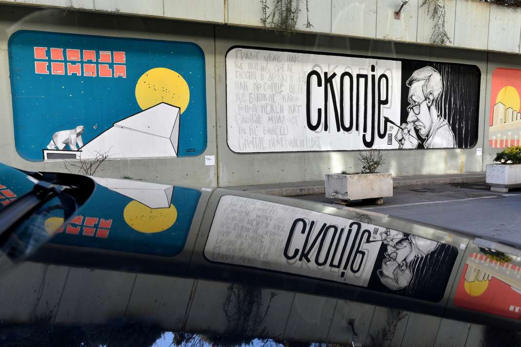 Еден од постарите мурали во Скопје е создаден за рекламни цели за една пивница пред дваесетина години. Кога завршило времето за платената реклама, станарите се договориле да ги избришат само маркетинг слоганите а да остане сликата. Муралот го прикажува централниот плоштад на Скопје пред земјотресот.