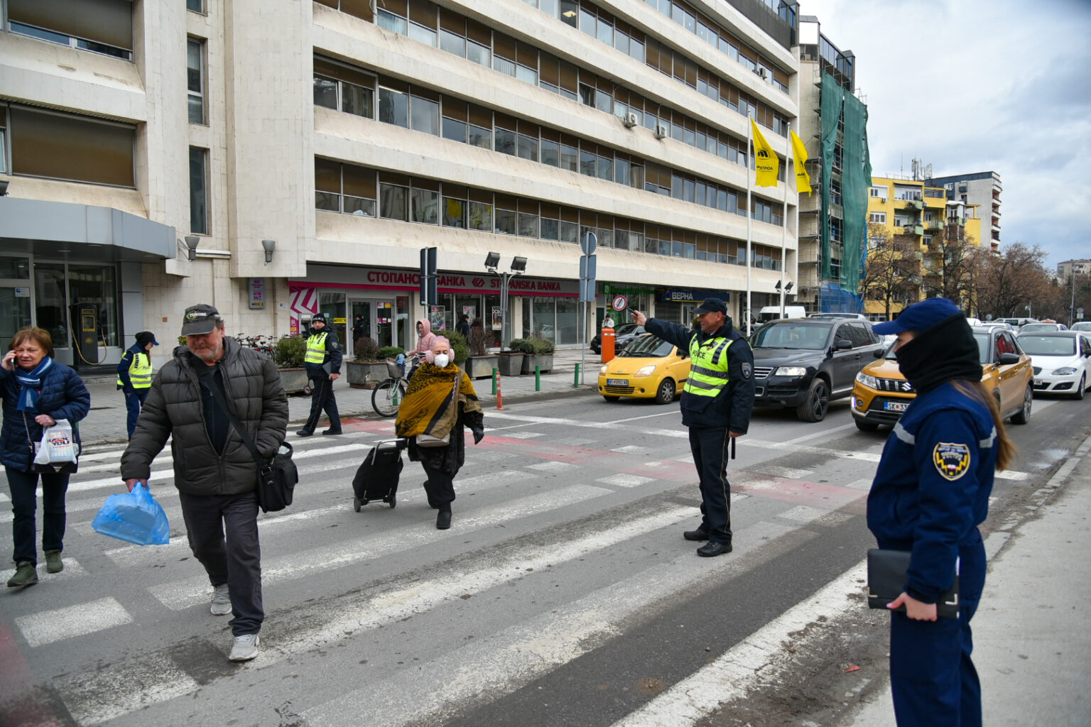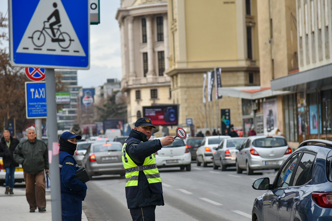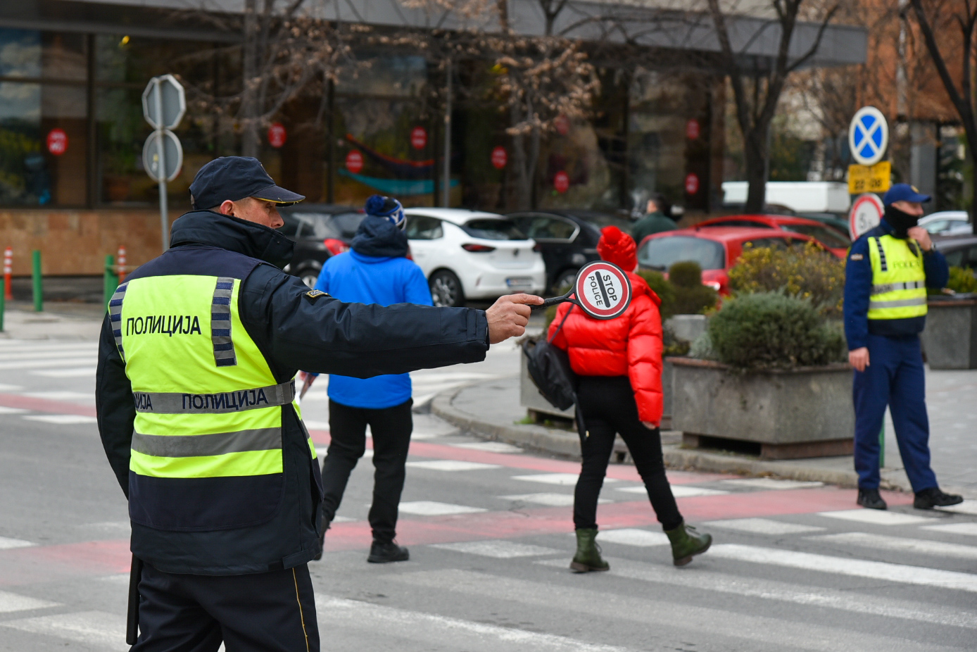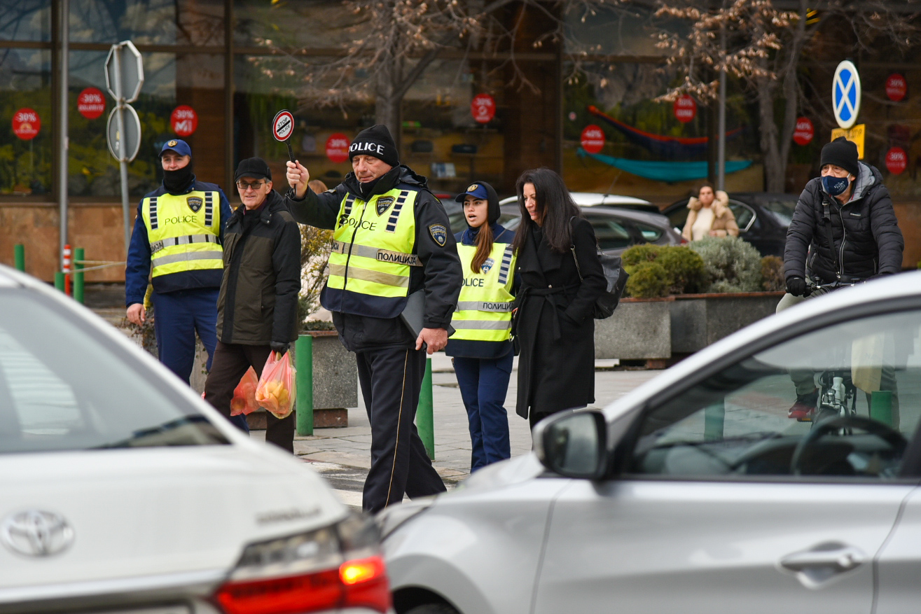 Во пресрет на новогодишните празници полни се пазарите, маркетите, трговските центри. Низ центарот на Скопје врвулици луѓе се движат по улиците, но не заостануваат и колоните возила, поради кои полицијата мораше да интервенира и на пешачки премин.