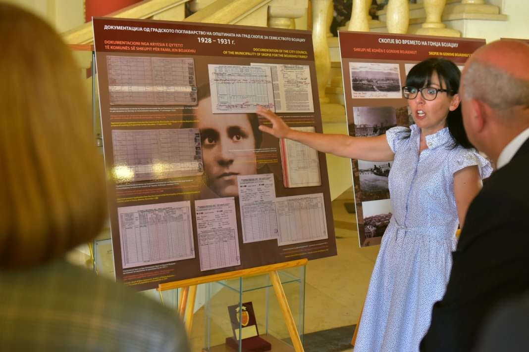 Авторката на изложбата, Јасмина Дамјановска, истакна дека преку изложбата на 16 паноа со повеќе од стотина документи и фотографии се прикажува се што се поседува во архивска документација за семејството Бојаџиу, за Гонџа Бојаџиу – за Мајка Тереза во соработка со бројни институции и поединци.