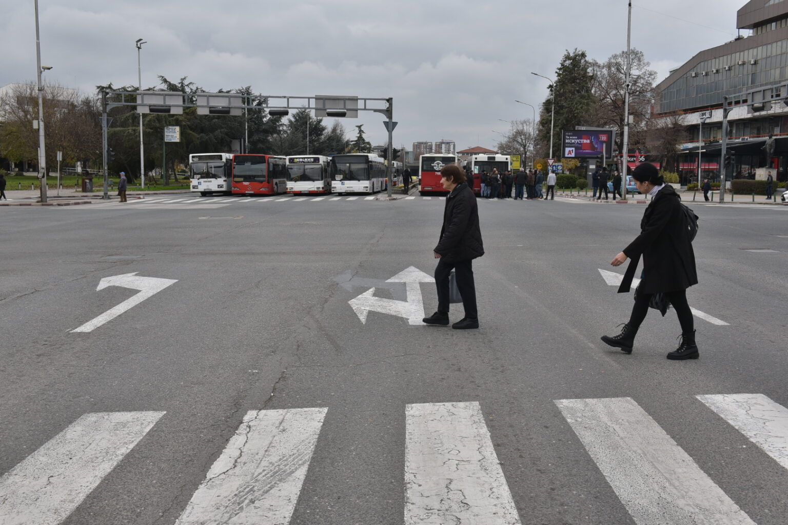 Автобусите се паркирани на крстосниците кај Мавровка, Црвен Крст и на Илинденска кај потегот од фонтана до СЦ „Борис Трајковски“, а се очекува ваквата состојба да продолжи додека трае блокадата.