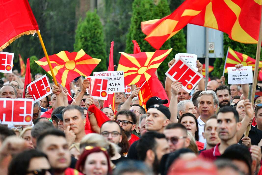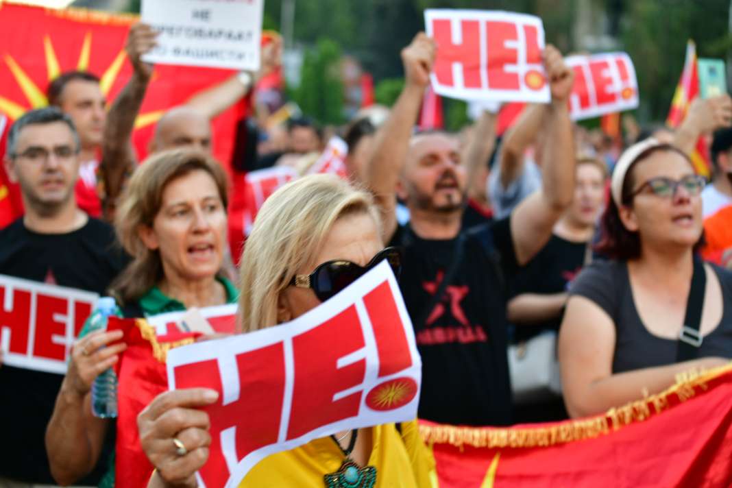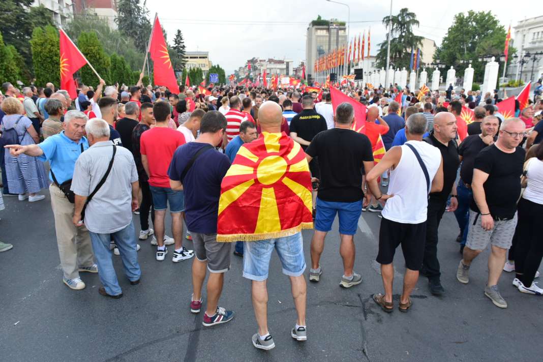 Говорниците – јавни личности, новинари, професори и претставници на здруженија ја повикаа Владата да не го потпишува предлогот со порака „Македонија е се што имаме и од неа никогаш и под никакви услови нема да се откажеме“.