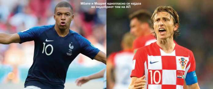 Данијел Субашиќ, Бенжамин Павар (Домагој Вида), Рафаел Варан, Дејан Ловрен, Лукас Хернандез, Еден Азар, Кевин Де Брујне, Лука Модриќ, Антоан Гризман, Килијан Мбапе и Марио Манџукиќ.