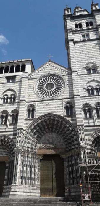 Повторно минуваме под портата „Сопрана“, една од многуте во Џенова, и се упатуваме кон катедралата „Св. Лоренцо“, убаво здание осветено во 1118 година, изградено во готски стил. Плени со својата мермерна фасада во бело-црна комбинација. Во внатрешноста на катедралата ќе ве воодушеват многубројни експонати, меѓу кои и сликата на Страшниот суд насликана во 14 век од непознат византиски сликар.