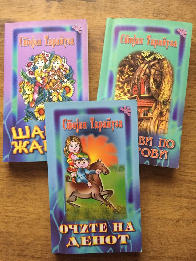 – Сосема случајно почнав да пишувам песни за деца, а првата, насловена „Нова чанта“ ја објавува во весникот „Нова Македонија“ и за неа добив многу пофалби. Тоа ме охрабри и продолжив да пишувам за најмладите, што ми причинува големо задоволство. Децата се благодарна публика, многу добри читатели и своевидни критичари. Тие знаат што е убаво и доживеано, а што лажно и неубаво. Во 1966 г. од печат излезе мојата прва стихозбирка за деца „Грејни сонце“, по неа втората „Полно кајче желби“, па третата „Думбара думбара“… и така по ред, бројот на авторските книги се зголемуваше сѐ повеќе. Досега имам издадено многу стихозбирки, кои се најдоа и во собрани дела, а имам добиено и вредни награди и признанија. Пишувањето и денес ме усреќува и исполнува, ме подмладува, бидејќи децата се мои другари, а јас нивни голем пријател – ни рече Стојан Тарапуза.