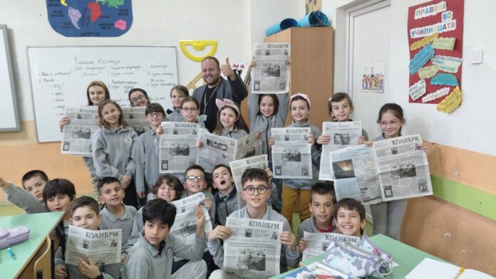 Сите овие прекрасни активности на четвртоодделенците од ООУ „Кире Гаврилоски-Јане“ беа повод „Колибри“ да ги посети. Освен тоа, повод беше и нивниот наставен час насловен „Читаме весници“. Сите ученици во понеделникот добија задача да го набават вторничното издание на весникот „Нова Македонија“, во кој е сместено најновото издание на „Колибри“. Така, со весниците пред нив, учениците имаа можност да слушаат и да учат за новинарството, за улогата на новинарите, научија и нови термини, како лектор, редакција, цензура, тираж, а научија и која е разликата меѓу новинар и уредник, но и што е вест, кои се главните пет прашања на кои треба да одговори веста, но и што е интервју, што е репортажа, а што извештај. За тоа им зборуваше нивниот гостин, уредникот на „Колибри“, Филип Димкоски, поранешен ученик во ова училиште. Откако „се заразија“ со мирисот на весникот, учениците беа поделени во групи, а секоја група претставуваше редакција и имаше задача да создаде текст. Па така, културната редакција пишуваше репортажа за нивната посета на театарска претстава, спортската редакција подготви прашања за интервју со ракометарот Кире Лазаров, еколошката редакција пишуваше за екопатролата во нивното училиште, а редакцијата за образование подготви вест за нивната соработка со училиштето во Шкотска. Паметните главчиња смислија безброј прашања што му ги поставија на нивниот гостин и, се разбира, сите добија одговор.