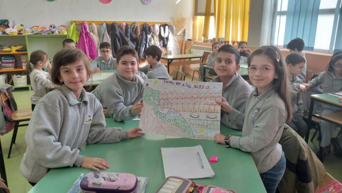 – Возбудата кај учениците беше голема. Текстот што го напишавме, го научивме и зборувавме на англиски јазик, за да можат да нѐ разберат другарчињата од Шкотска. Снимавме по два-три пати во неделата. Сите ученици беа вклучени, пресреќни што се вклучени во една ваква активност. Се поделивме и во пет групи, а секоја група имаше различна задача. Првата група ја нацрта картата на Македонија, втората група нашето училиште, третата група Могилата на непобедените, четвртата група Маркови Кули, а последната петта група нашето одделение. Снимавме на неколку места, како одиме на училиште, на влезот пред портретот на Кире Гаврилоски-Јане, нашите скалила со многу поуки, на бината, пред училницата, во нашата училница и секако во училишниот двор, пред муралот на нашиот патрон – раскажува Стевананџија.