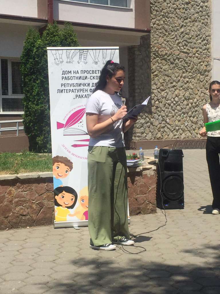 Тој ја прочита својата песна за Блаже Конески, чие им со гордост го носи училиштето каде што вторпат се одржа фестивалот „Ракатки“.