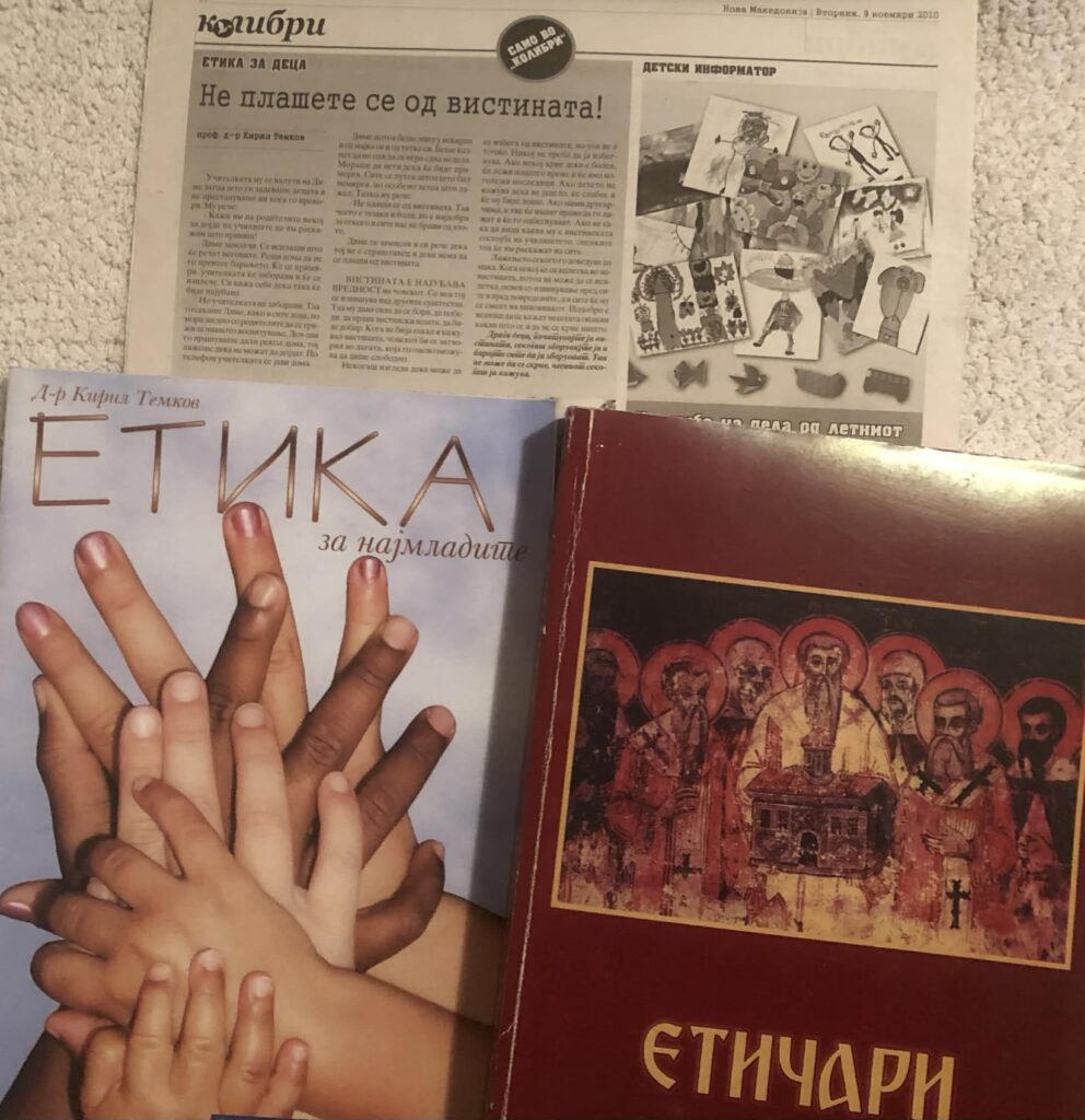 Во издание на „Нова Македонија“ пред десетина години излезе од печат и неговиот прирачник „Етика за најмладите“, што наиде на извонреден прием кај просветните работници.