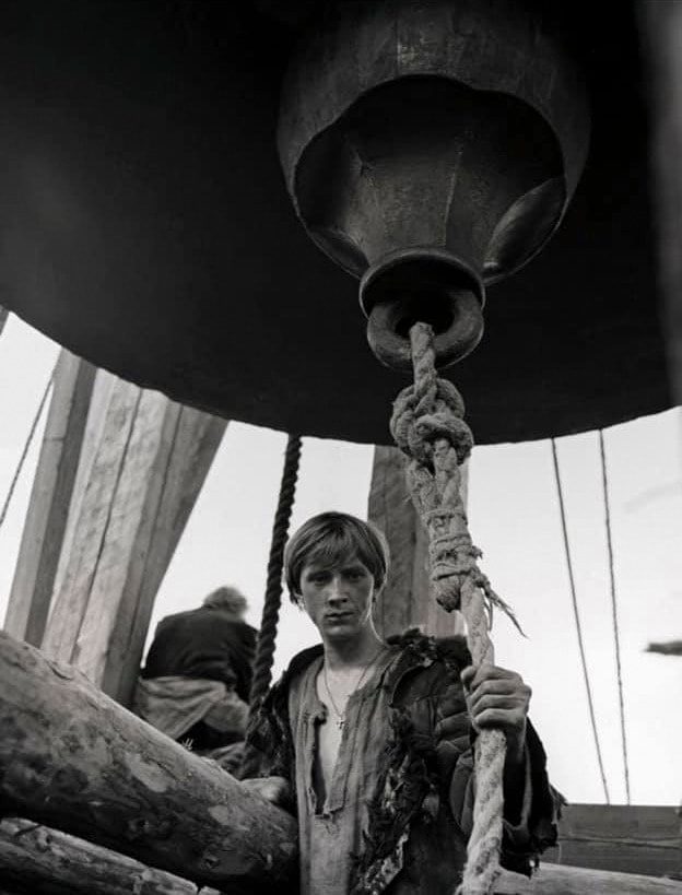Додека се прават првите подготовки, момчето Бориска го бара звукот на камбаната во земјата, во гранките на дабовите, во дождот и во калта, во мирисот на првиот есенски ден. Го бара милувајќи една птица. Ги пронаоѓа корењата на високите стебла, длабоко под земјата. Тој мора да слушне од каде доаѓа тој звук, за да може да го најде моделот според кој ќе го создаде. Се вслушува во звукот на огнот, во капките на дождот што се впива во сувата земја. Старите мајстори, помошници, му се смеат на безделното губење време. Тој не спие со денови, заборава да јаде, заборава на секоја дреболија од која е создаден секојдневниот живот на овој свет, шепоти нешто што личи на молитва… Всушност, тој целиот е претворен во молитва. Не е присутен на земјата, како да лебди. Неговите дланки се згрчени и пуштени кон небото како птици и повеќе нема враќање во нормалниот досаден свет. Иако е дете, сите го слушаат. Иако е млад, сите го почитуваат. Тој е целиот пламен, кој осветлува сѐ околу себе. Ги предводи старците и децата во знаењето и умеењето, во занесот и екстазата на својата уметност. Токму во тој дел од филмот, живописецот Андреј е само обичен статист. Тој едвај и да се појавува во сцените. Како сенка е, сите го одминуваат. Никој не смее да влезе во просторот за да го попречи големиот чин, во кој едно младо момче ја знае тајната и решило да создаде совршена камбана, која ќе ѕвони од врвот на една камбанарија! Во еден миг, дури, му вели со дрзок глас: Тргни се, монаху, нели гледаш дека ми пречиш во работата?!