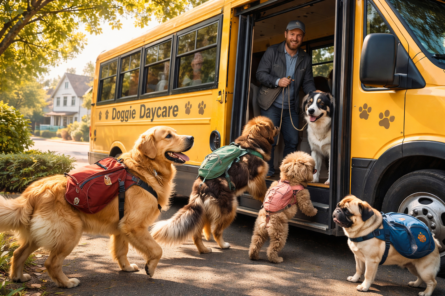Услугите за превоз до градинките за кучиња сега се достапни во канадските градови Калгари, Торонто и Киченер-Ватерло. Компаниите како „Руф енд Пуф“ (Ruff and Puff ) и „Пју трипс“ ( PawTrips) испраќаат мини-автобуси директно до домовите на сопствениците, а нивните миленици со одушевување влегуваат во возилата.