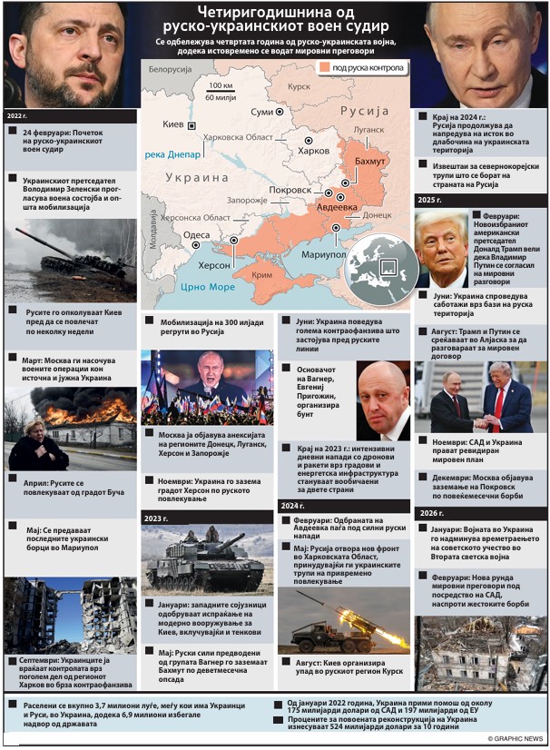 ПРИЛОЗИИзборПЕЧАТЕНО ИЗДАНИЕ Четиригодишнина од руско-украинскиот воен судир Од НМ - 10:22 21.02.2026 Сподели Facebook Twitter Email Print Viber ПОВРЗАНИ СТАТИИПОВЕЌЕ ОД АВТОРОТ Магазин Комбе полно кучиња е мит – миграцијата е наука Магазин Прилепските мечкари заштитено нематеријално културно добро Култура Институтот за фолклор ја чува душата на македонскиот народ