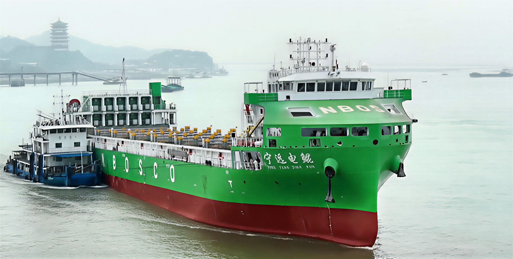 Бродот „Нинг Јуан Диан Кун“ тргна од пристаништето Нингбо-Џоушан кон пристаништето Џиаксинг, обете лоцирани во источната кинеска покраина Џеџијанг. Прометната бродска маршрута, која традиционално ја опслужуваат бродови на фосилни горива, сега очигледно се префрла кон електрификација.