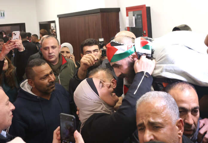 Полицијата не можеше да ги задржи толпите. Штом ги видоа палестинските затвореници и притвореници низ прозорците на автобусот, стотици луѓе собрани пред театар во Рамала на Западниот Брег се стрчаа напред, скандирајќи ги имињата на најблиските што не ги виделе со години или, во некои случаи, со децении. Нивните лица беа исцрпени и украсени со свежо закрпени рани. Едниот од ослободените, завиткан во палестинска кефија, формирајќи ја со прсти буквата „V“ во знак на победа, одеднаш беше пред неговата мајка, чии нозе почна да ги бакнува.