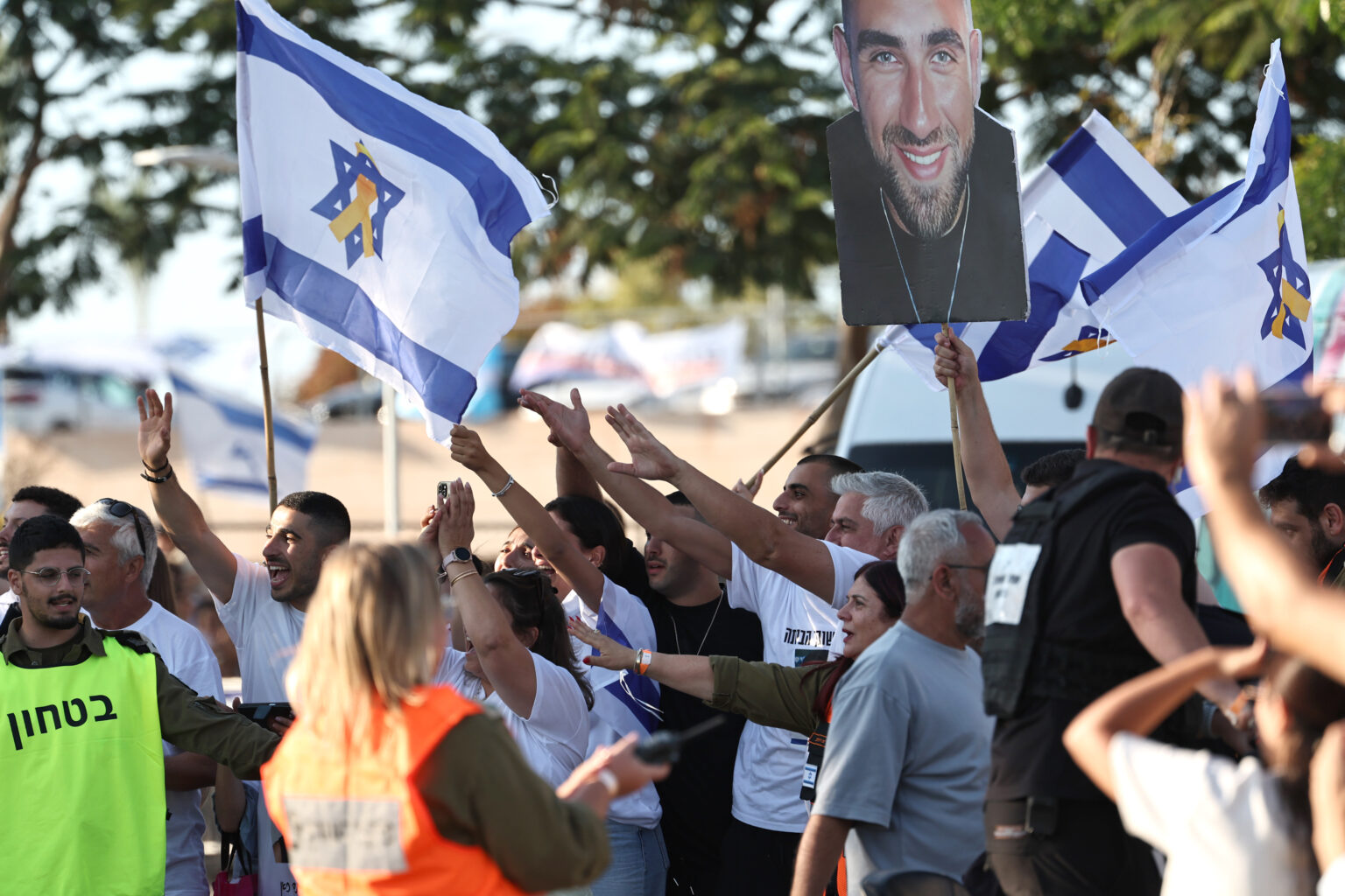 Сликите на два големи екрани од двете страни на плоштадот им овозможија на илјадниците собрани да ја видат реакцијата на семејствата во воената база „Реим“ во близината на Газа, каде што чекаа да бидат повторно обединети со нивните блиски. Прегратките и солзите видливи на екранот одекнуваа на плоштадот.
