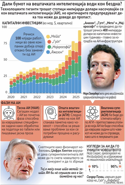 • Извештајот од Институтот за вештачка интелигенција за работа, изработен со истражувачи од универзитети, вклучувајќи ги „Нотр Дам“, „Харвард“ и Калифорнискиот универзитет во Санта Барбара, објавен неодамна, вели дека вештачката интелигенција ги претвора обичните канцелариски работници во луѓе што се чувствуваат попаметно и попродуктивно, додека нивните основни вештини полека еродираат