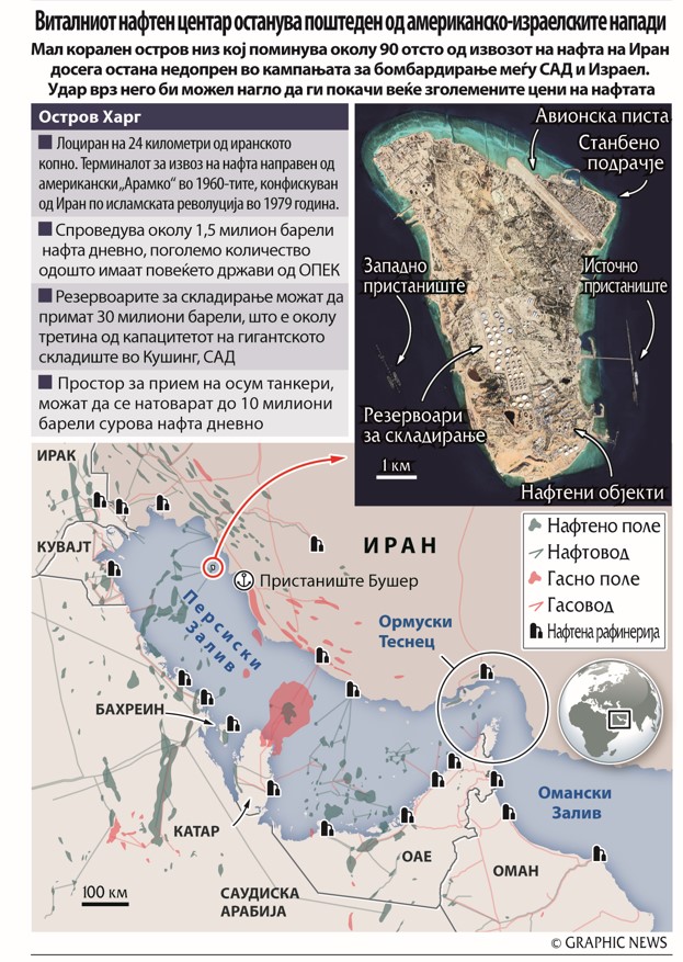– Островот Харг е доволно важен за иранската економија што уништувањето на неговите објекти би го напуштило секој изговор за водење војна за да се создаде посветла иднина за Иран – тврди Нусбахер, бидејќи тоа би го лишило наследникот од витални приходи од нафта.