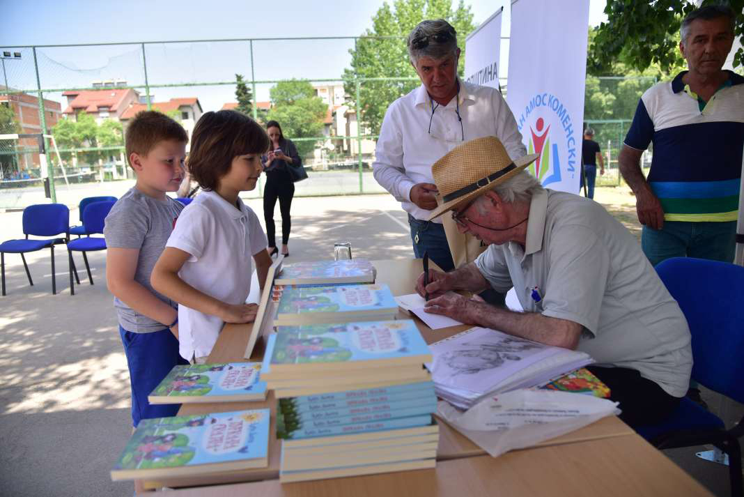 Познатиот детски писател ја потпиша секоја подарена книга, а приреди и мал рецитал со своите песни. Комуницираше со децата, се пошегува со нив, им кажуваше гатанки, а ја прочита и својата песна „Ода на детството“.