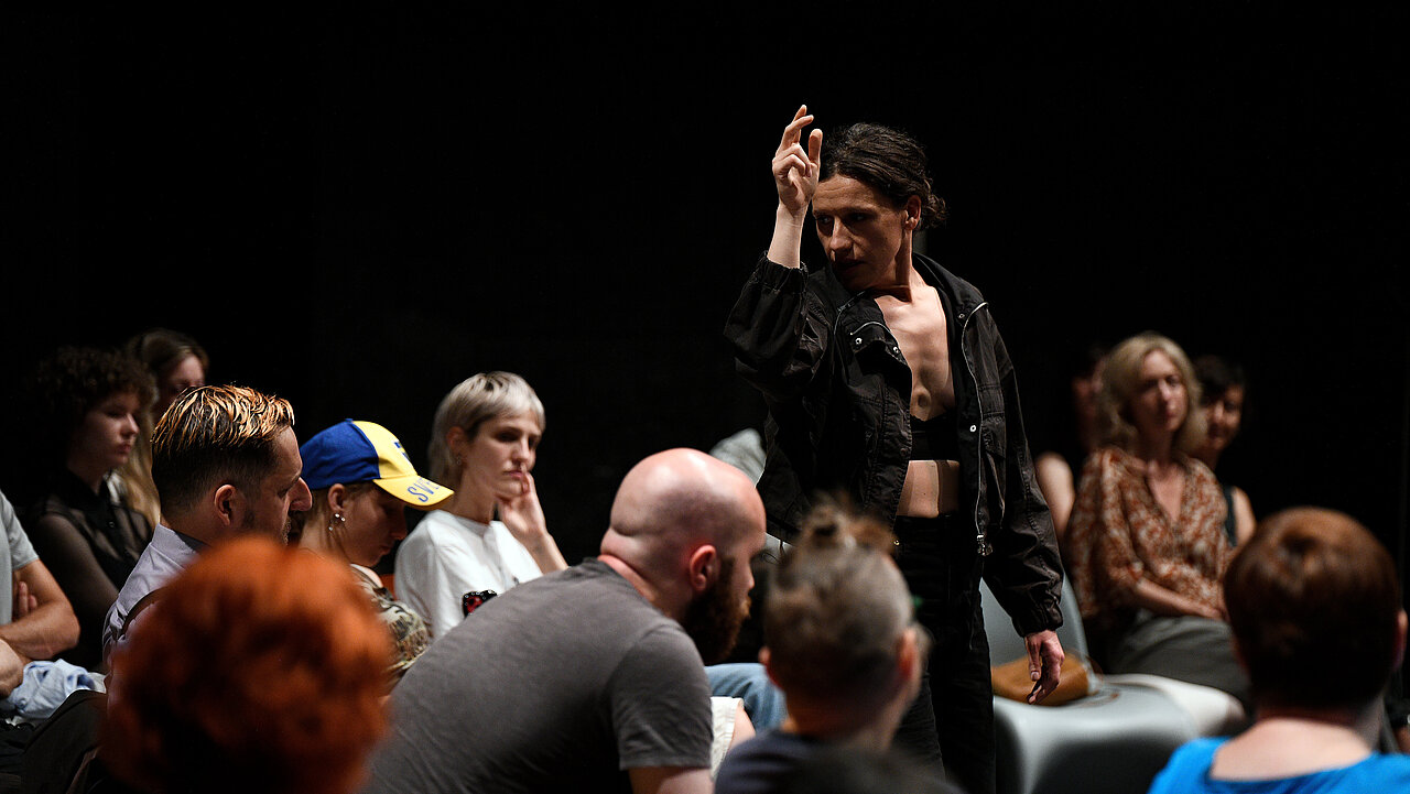 Викторија Илиоска ја претстави својата уметничка пракса, вклучувајќи ја досегашната работа, како и „Хоуп фор д бест – припеар фор д ворст“, перформативен тренинг што го третира телото како ресурс, а театарскиот диспозитив како заедничка инфраструктура. Развиена во услови на кратења во културата и екстрактивни економии, работата ја поставува публиката како активен материјал на ситуацијата, а не како набљудувач – каде што вниманието, физичкото присуство и издржливоста циркулираат како заеднички ресурси. Делото прашува за што треба да се тренираме како колективно тело за иднината што доаѓа.
